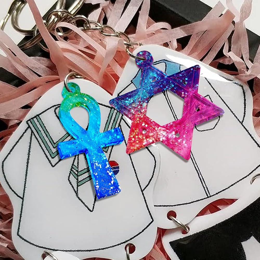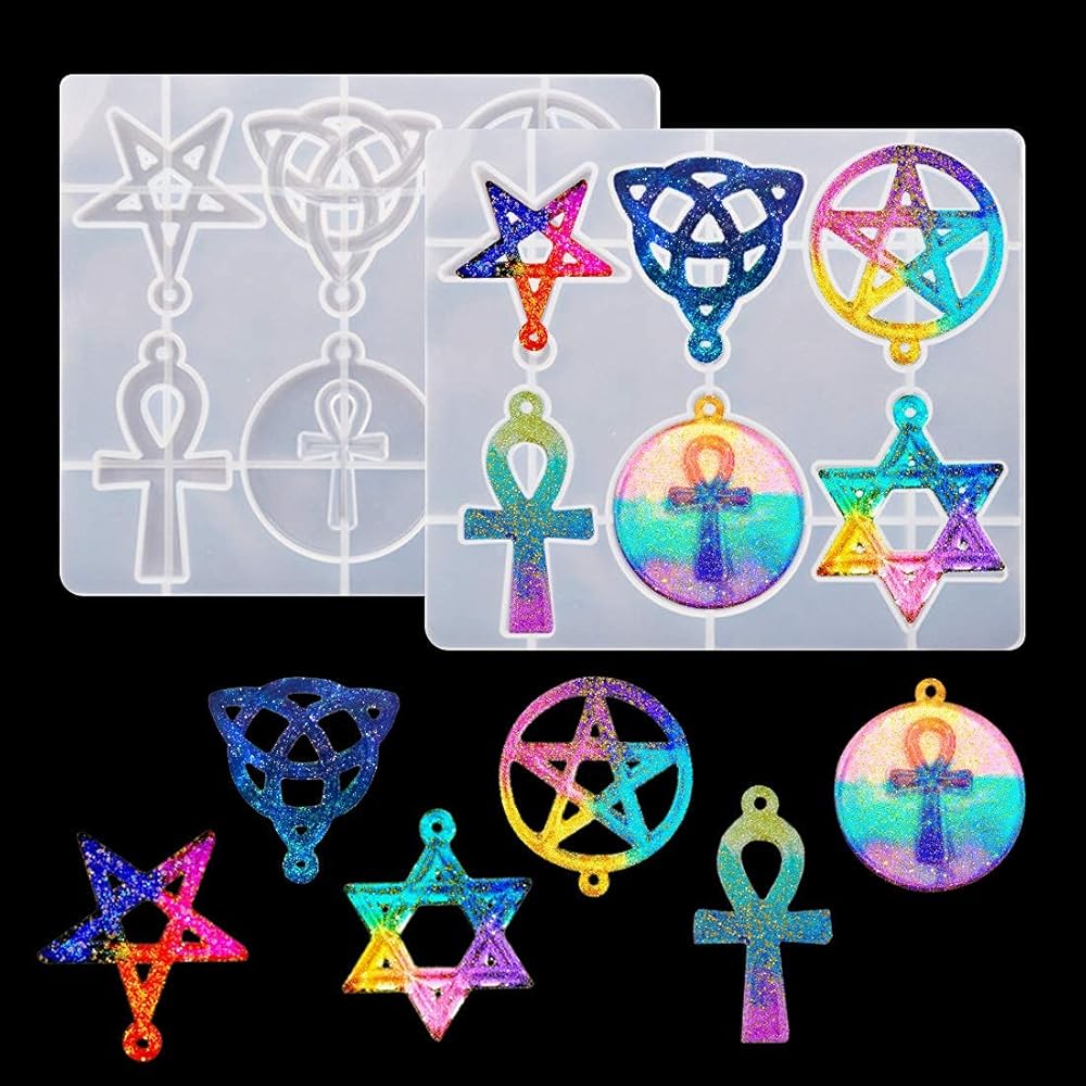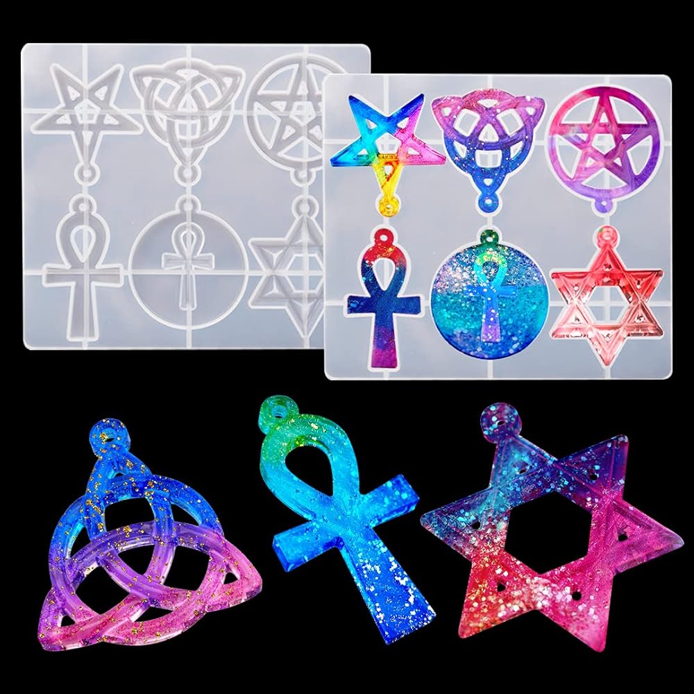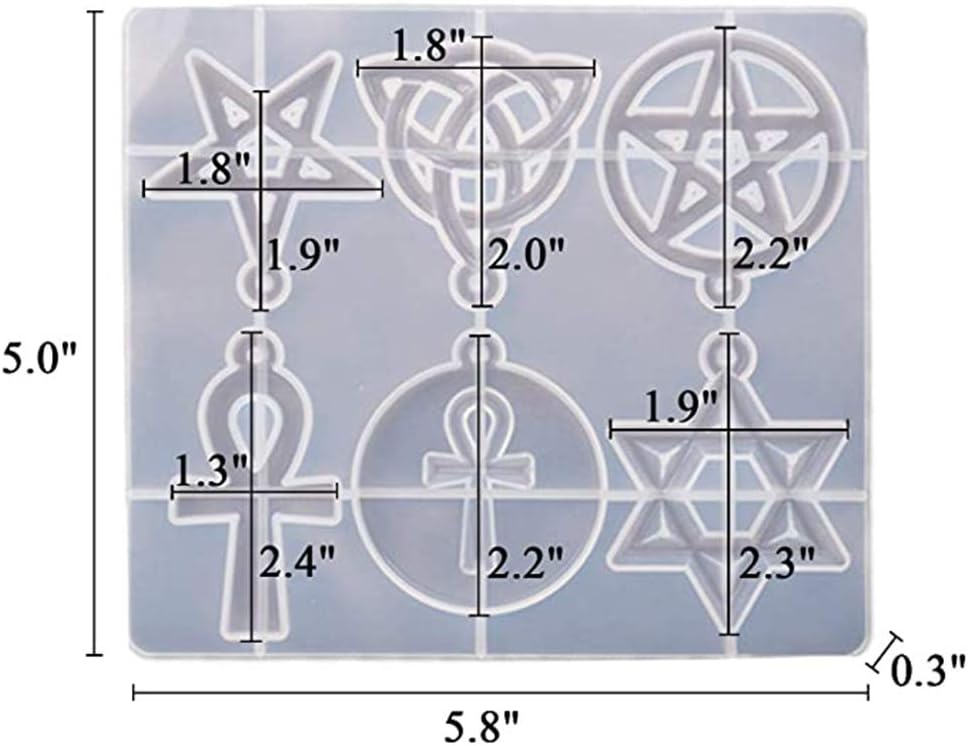 ✭ ستحصل على: تتضمن العبوة قطعتين من قوالب الراتنج، مع 6 أشكال وأحجام مختلفة من قوالب الراتنج ذات الطابع الديني. مقاس 5.79*5.00*0.31 بوصة. بما في ذلك النجمة الخماسية، ونجمة داود، وعقدة الثالوث السلتية الأيرلندية، وصليب العنخ المصري. إنها مناسبة جدًا لصنع مجوهراتك الفريدة والمعلقات وسلاسل المفاتيح والديكورات وما إلى ذلك.
