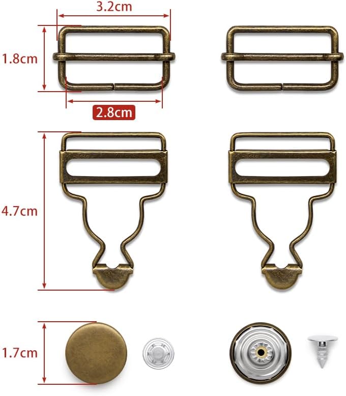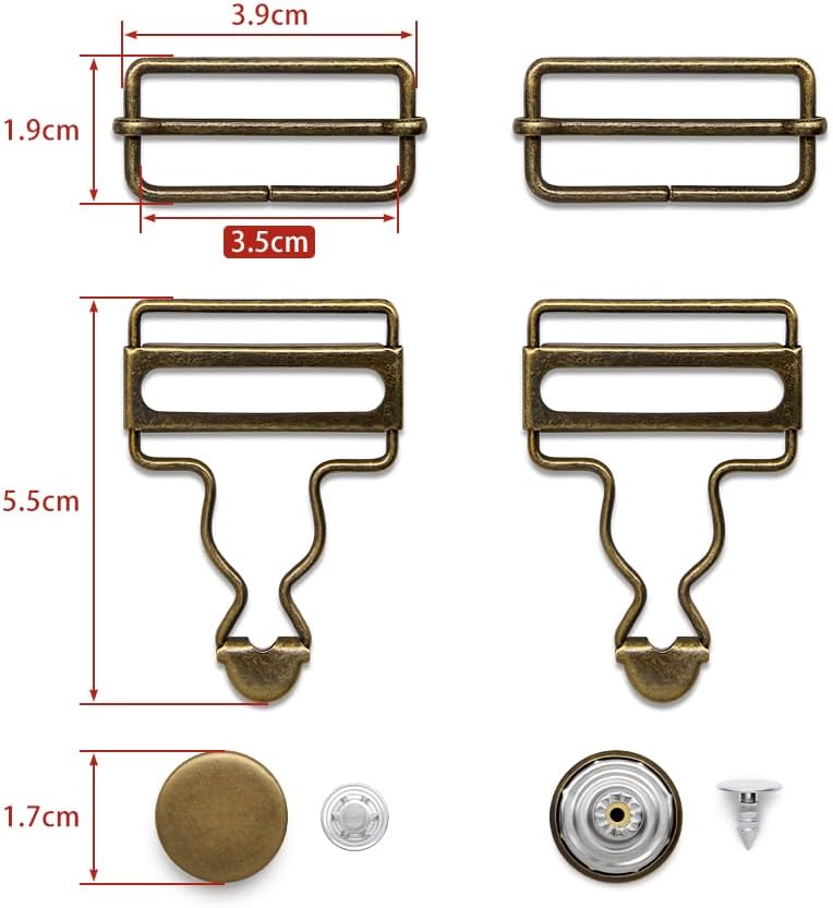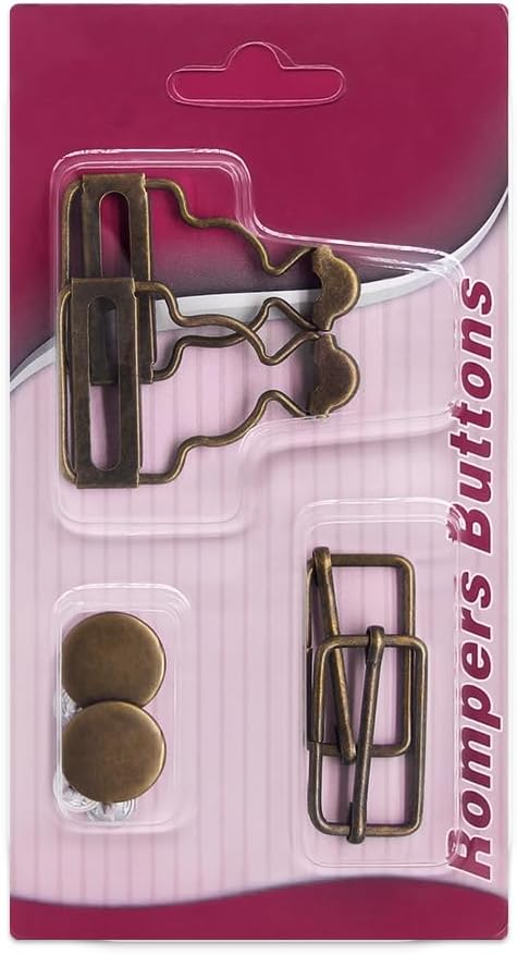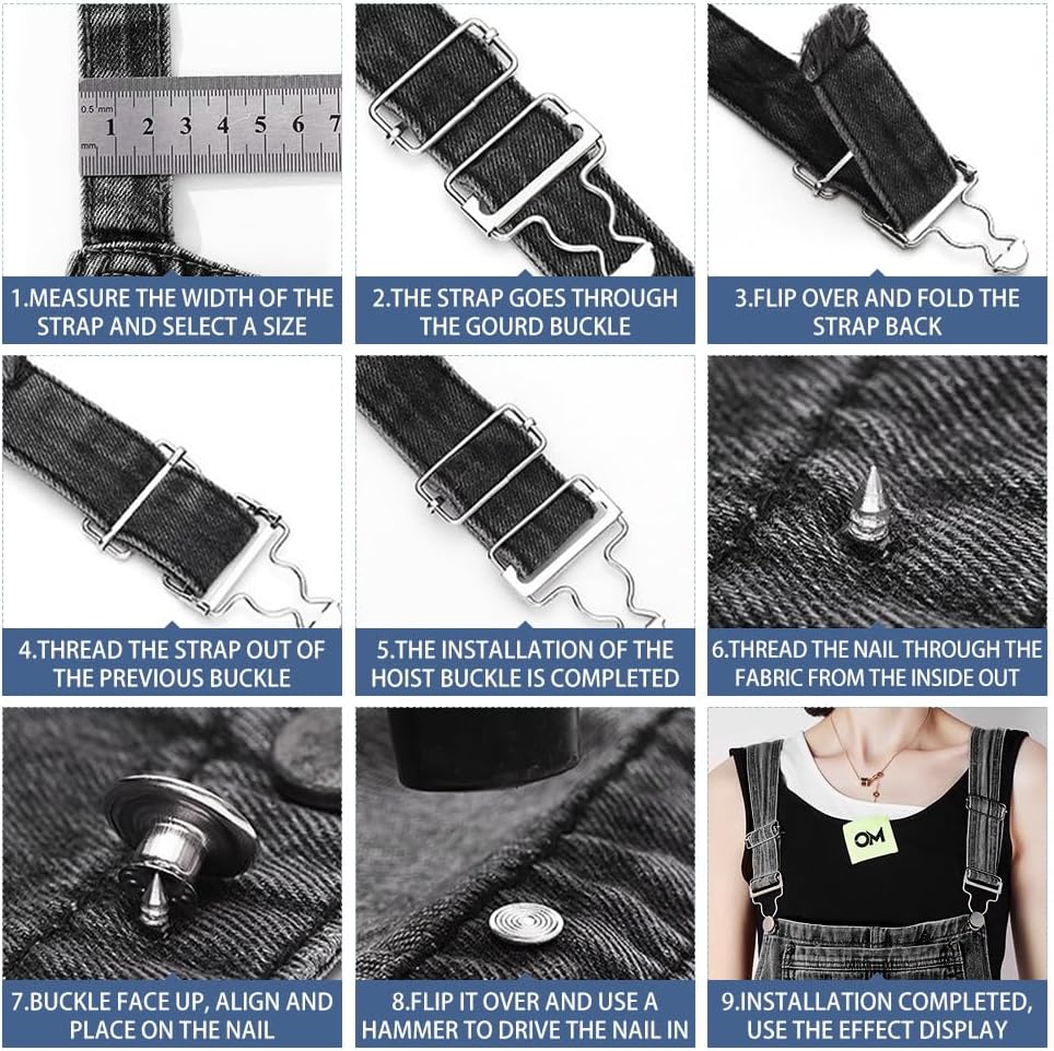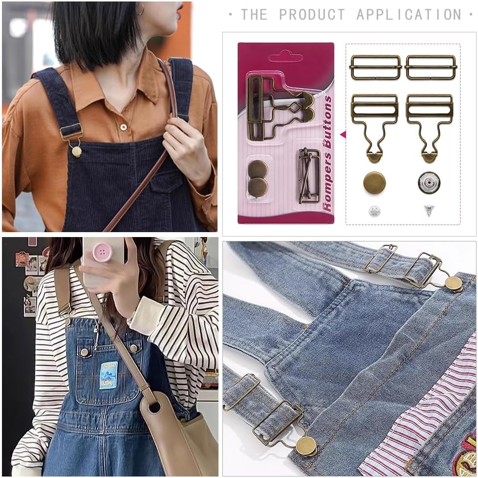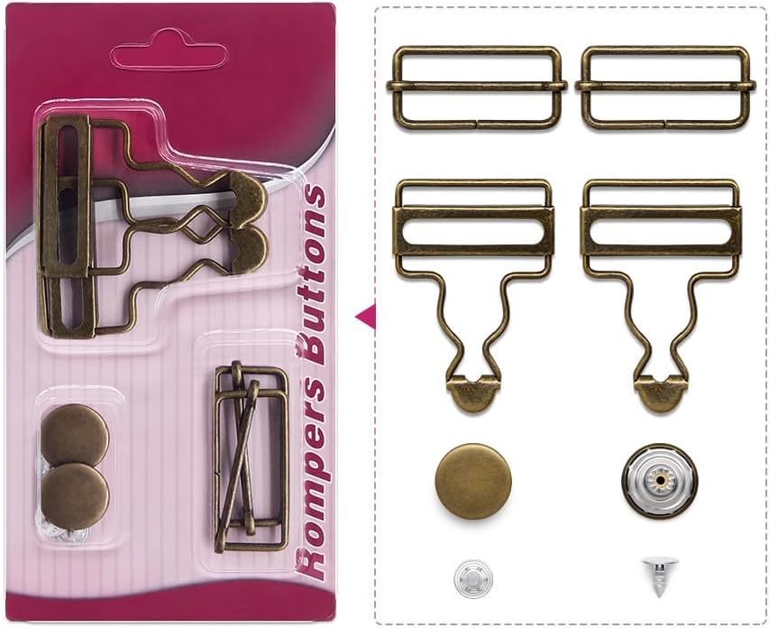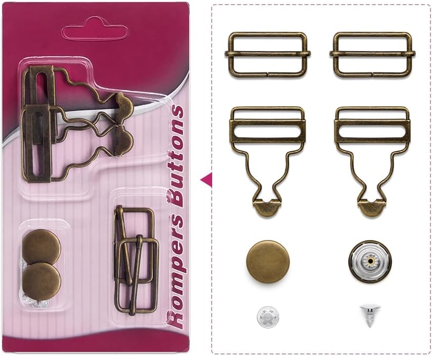 SEMINI overall buckles with no-sew buttons are ideal fasteners for both apparel and accessories. Use for DIY sewing projects as well as repairing, replacing or adding buckles to store-bought garments. This package contains 2 no sew buttons and 2 buckles 2 adjusters