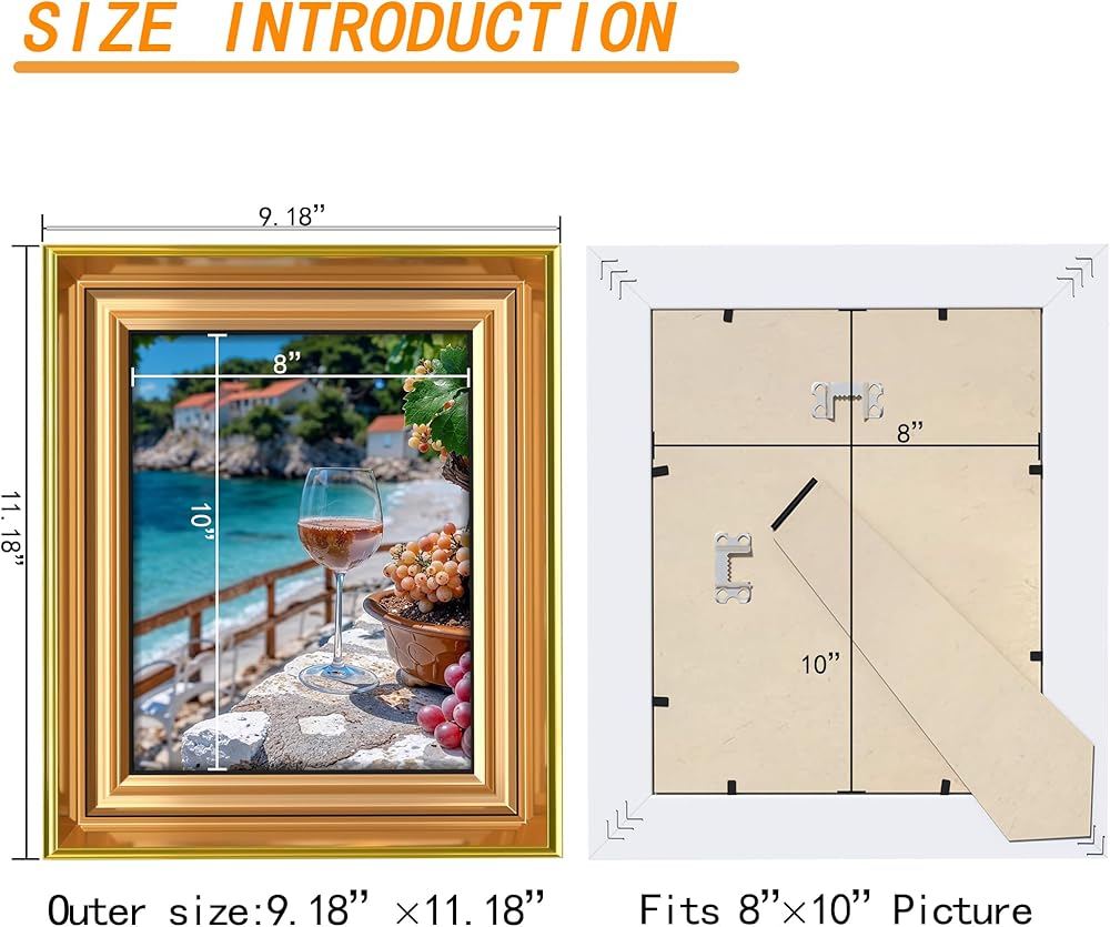 الجودة: إطار الصورة هذا مقاس 8 × 10 مغطى بزجاج شبكي آمن، والذي لا يجعل المنتج يبدو أكثر لمعانًا فحسب، بل يجعل صورك أو أعمالك الفنية تبدو أكثر وضوحًا.