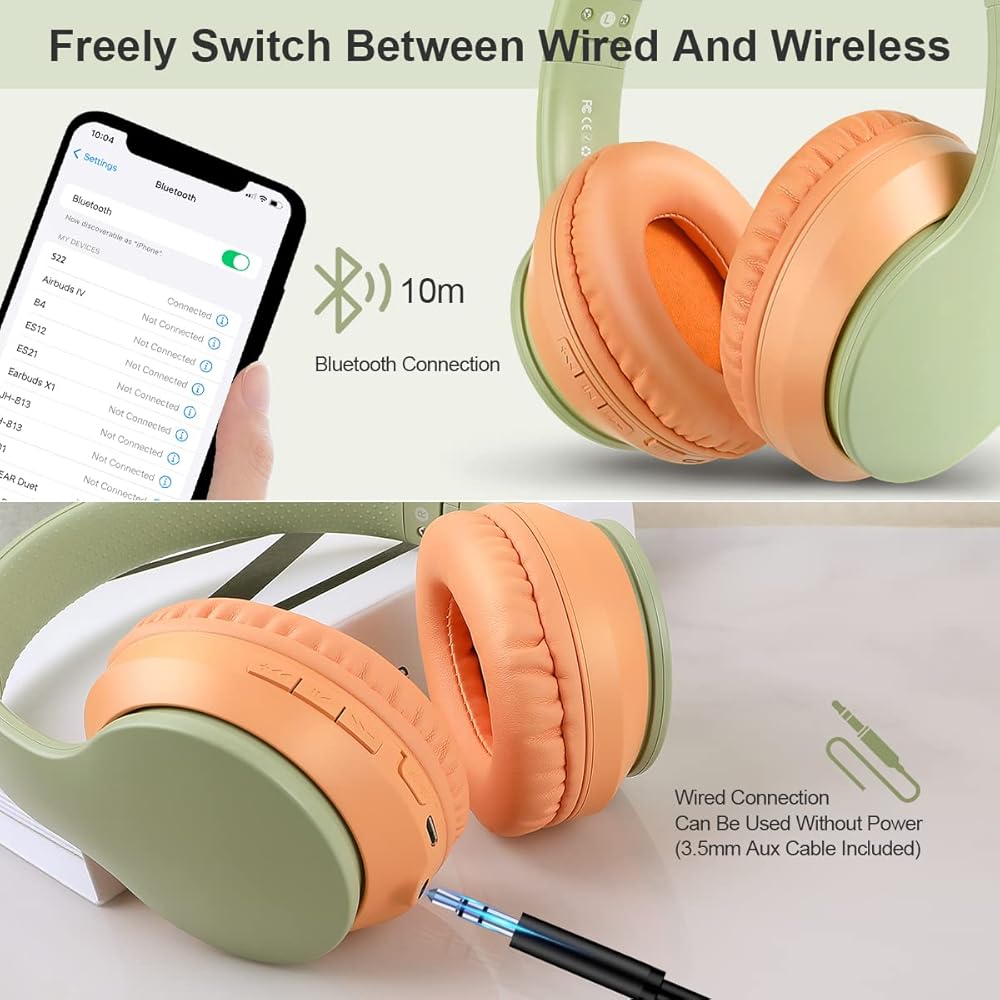 سماعات رأس لاسلكية وسلكية: يمكن لسماعات الرأس بلوتوث فوق الأذن استخدام اتصال بلوتوث، متوافقة مع معظم أجهزة البلوتوث الموجودة في السوق، حتى إذا لم يكن جهازك مزودًا بتقنية البلوتوث، يمكن استخدام سماعات الرأس هذه أيضًا كسماعات رأس سلكية ولاسلكية. سماعة رأس سلكية، نقدم لك كابل صوت 3.5 مم، يمكنك فقط توصيله للاستخدام، لتلبية احتياجاتك في مجموعة متنوعة من السيناريوهات
