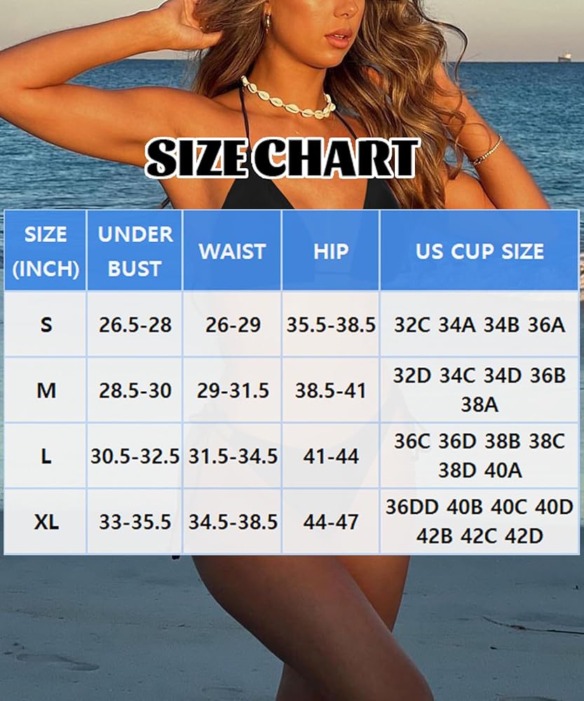 - المقاس: قبل طلب مجموعة البكيني النسائية هذه، يرجى الرجوع إلى جدول المقاسات الموضح في الصورة.