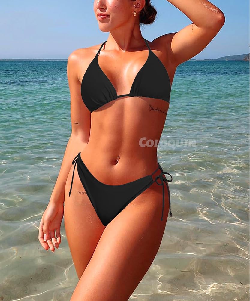 - التصميم: بيكيني علوي مثلث الشكل/أشرطة سباغيتي/جزء علوي بيكيني برباط خلفي/وسادات قابلة للإزالة/جزء سفلي بيكيني منخفض الارتفاع.