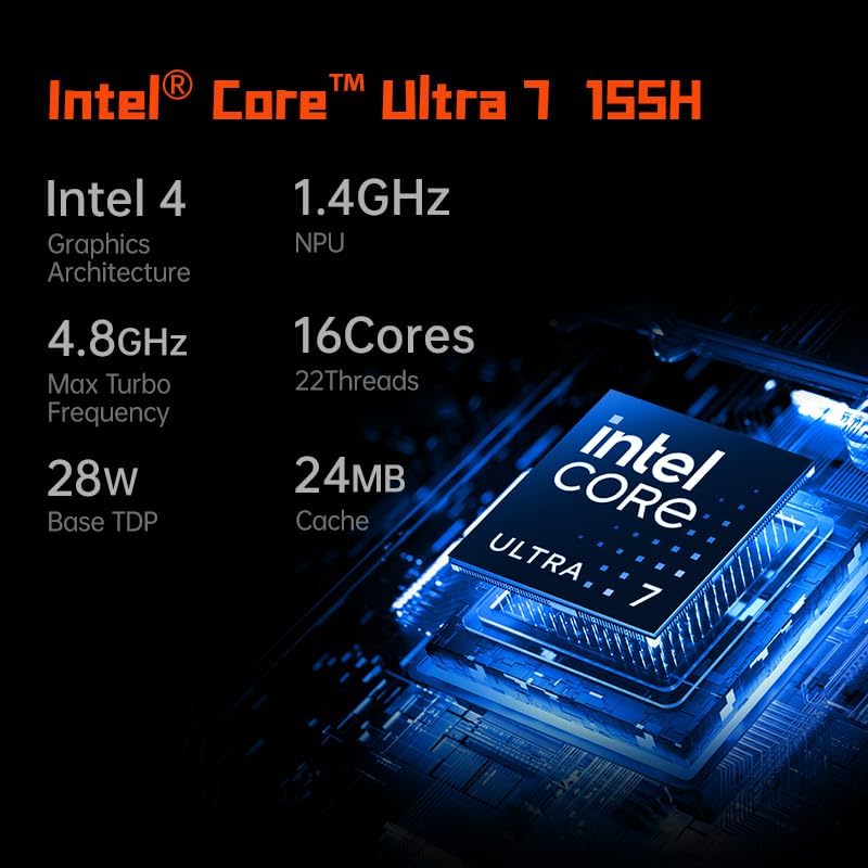 أحدث معالج Intel Core Ultra 7 155H: 16 مركزًا و22 خيطًا، أسرع بنسبة 10% من 7840U في أداء وحدة المعالجة المركزية، ومدمج بأحدث وحدة معالجة الرسومات Intel Arc ووحدة NPU، ويتعامل مع ألعاب 3A والمكاتب وAIGC بسهولة.