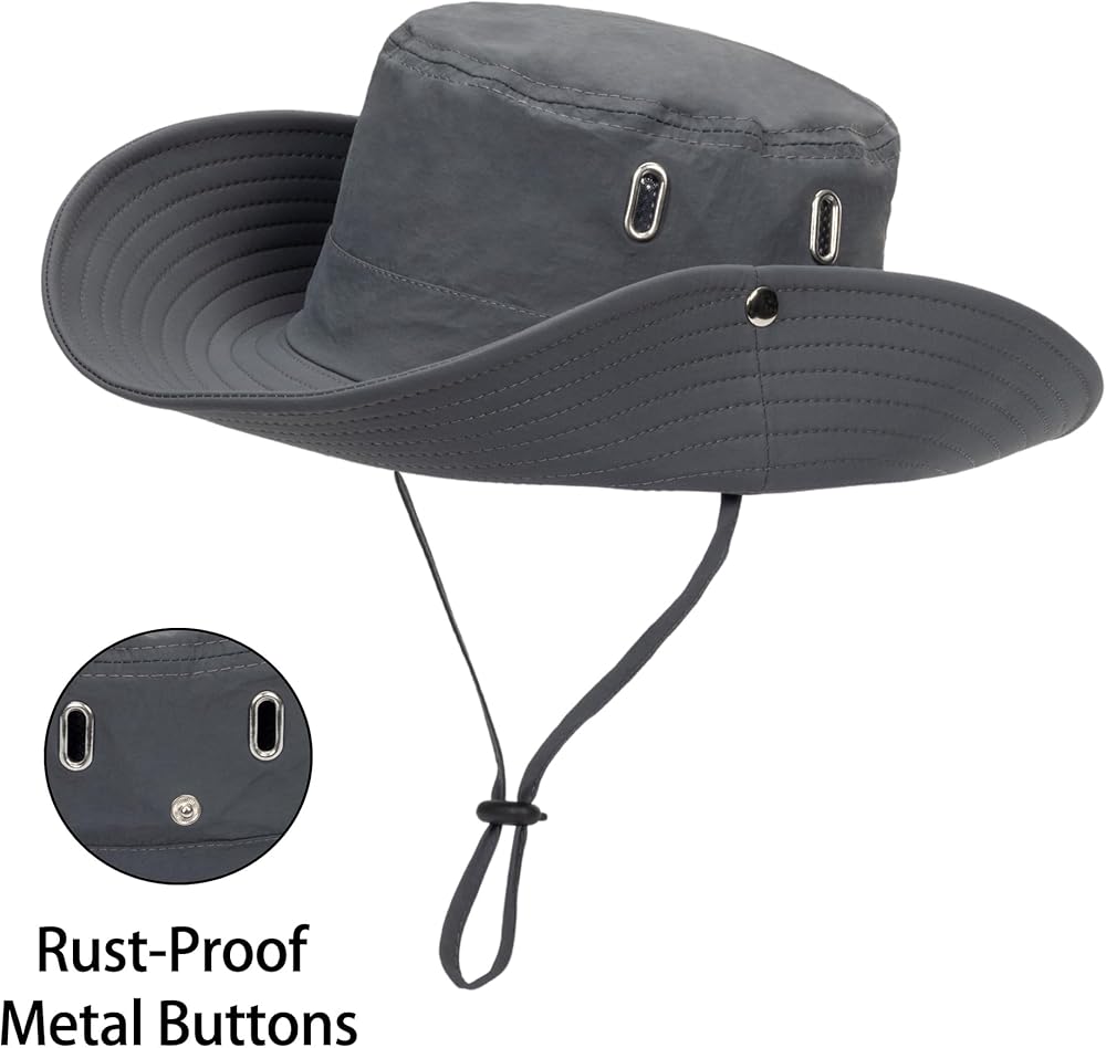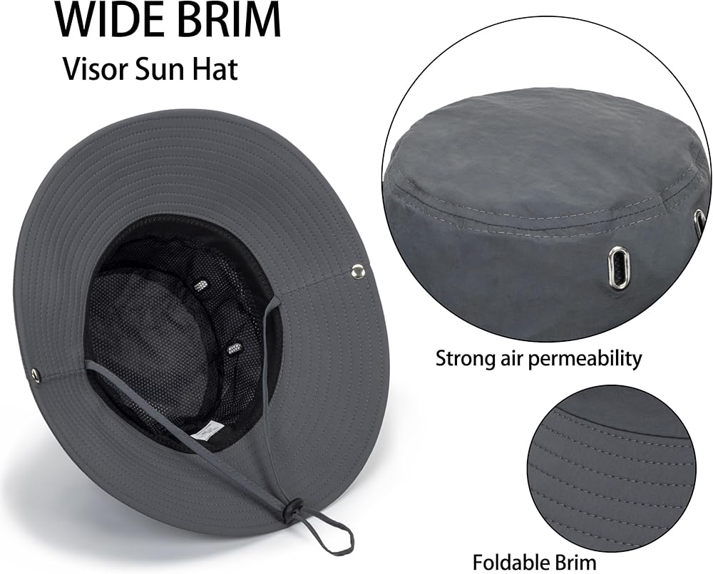 Premium Quality : Men's sun hat is made of high quality polyester, repellent nylon fiber, lightweight and quick dryin. size fits men's head circumference of 22-22.8 inches.Sun hat with wind cord.Adjustable chin strap keeps the fishing hat on your head even in windy day protecting from losing.