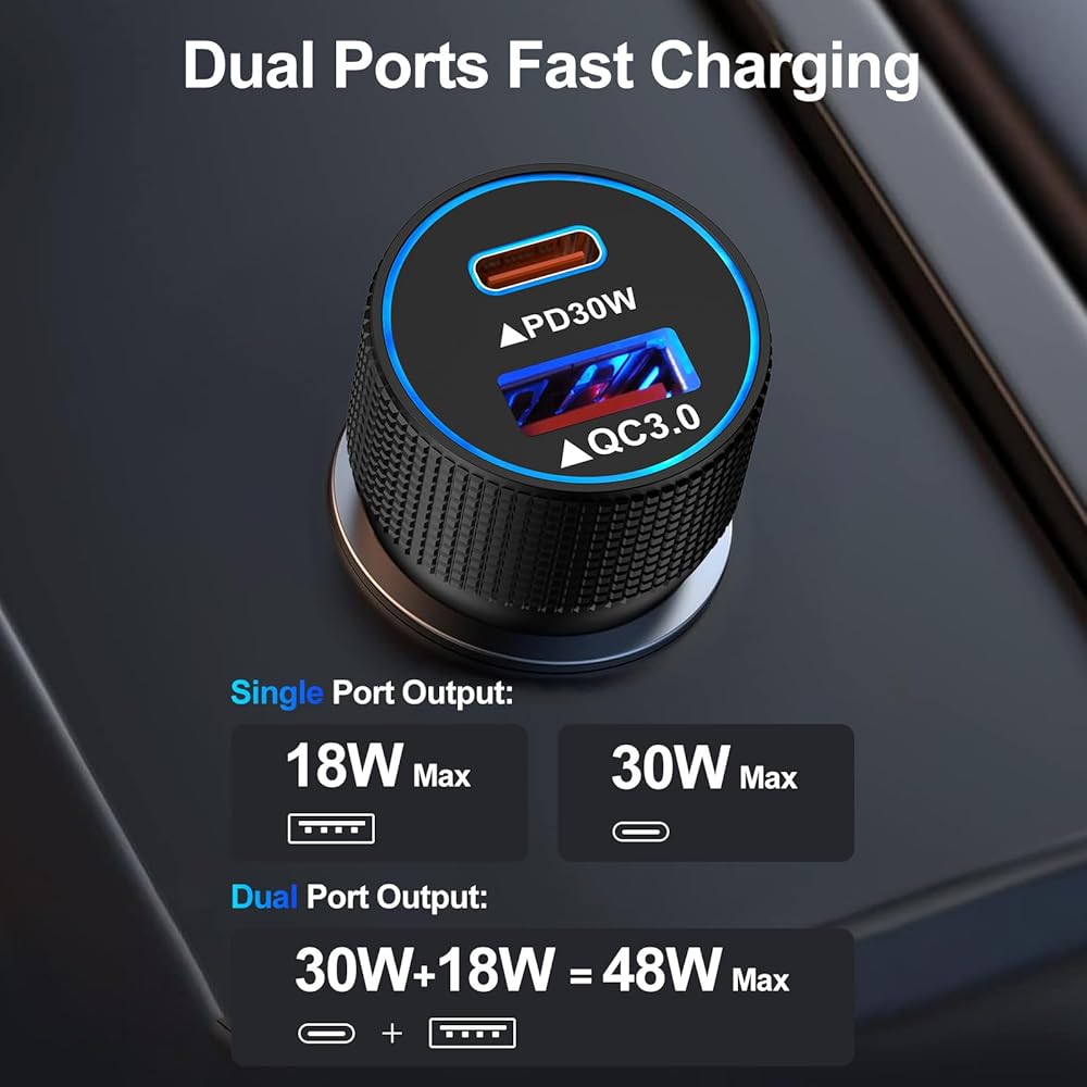 1.The PD port provides up to 30W of charging power, while the USB-A port supplies up to 18 W. You can achieve rapid charging with this phone charger for car cigarette lighter, but your phone must support it.