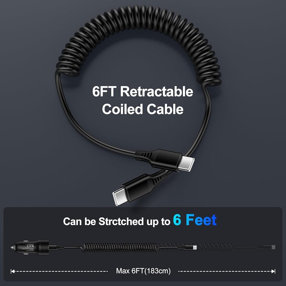 • [6FT Coiled Cable] The included coiled cable offers 3.1A rapid charging, data transmission at 480 Mbps, and a maximum output of 60W. The lightweight and flexible design allows for easy stretching up to 6 feet, saving space when coiled.