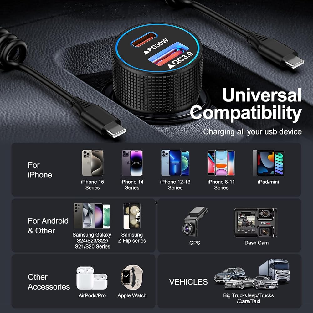 • [Versatile Compatibility] Compatible with all USB charging cables and most cars, vans, and trucks. Works with iPhone 15 Pro Max/15 Pro/15 Plus/15,Samsung Galaxy C55/A55/A25/A15/A05/A24/A54/A34/A14/A04/A23/A13/A52, S24 Ultra/S24+/S24/S23 FE/S23 Ultra /S23+/S23/S22 Ultra/S22+/S22 /S22FE/S21 Ultra/S21+ /S21/S20 Ultra/S20+/S20/S10/S10+/S10e/S9+/S9/S9 FE/S8+/S8,Note 20 Ultra/Note 20/Note 10+/Note 10/Note10 Lite/Note 9/Note 8, Z Fold 5/Z Flip 5/Z Fold 4/Z Flip4/Z Fold 3,Google Pixel 8a,and more.
