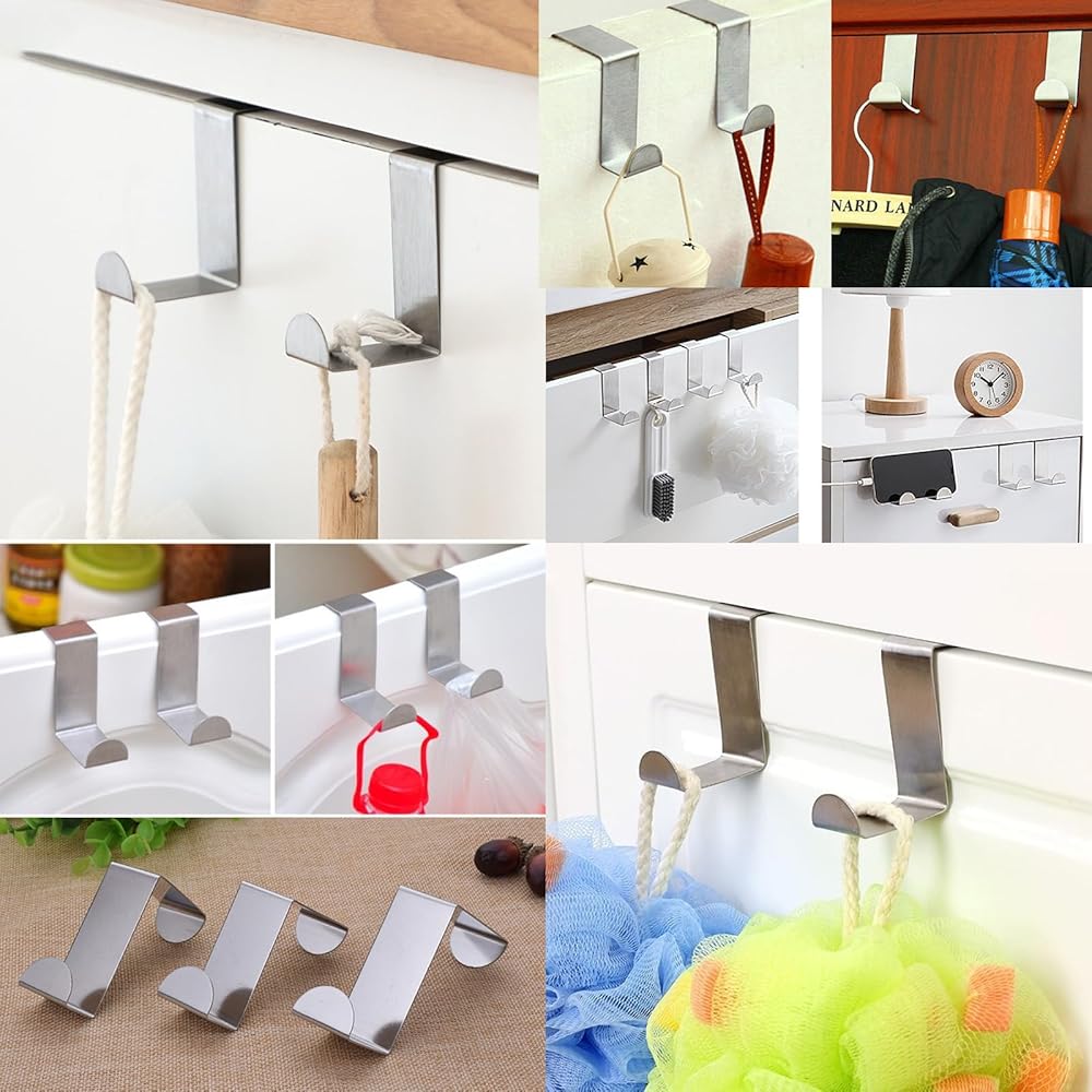 MULTI-SCENE APPLICATION: Place the cabinet hook behind doors to hang essentials for going out, such as keys, wallets and umbrellas. Over-the-door hooks can also be used in the bedroom to hang clothes you change when you get home, such as coats, hats, scarves or handbags. It can also be used in the bathroom to hang bath towels, towels, clothes, etc.It can also be used outdoors.