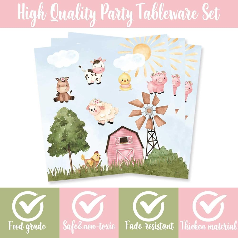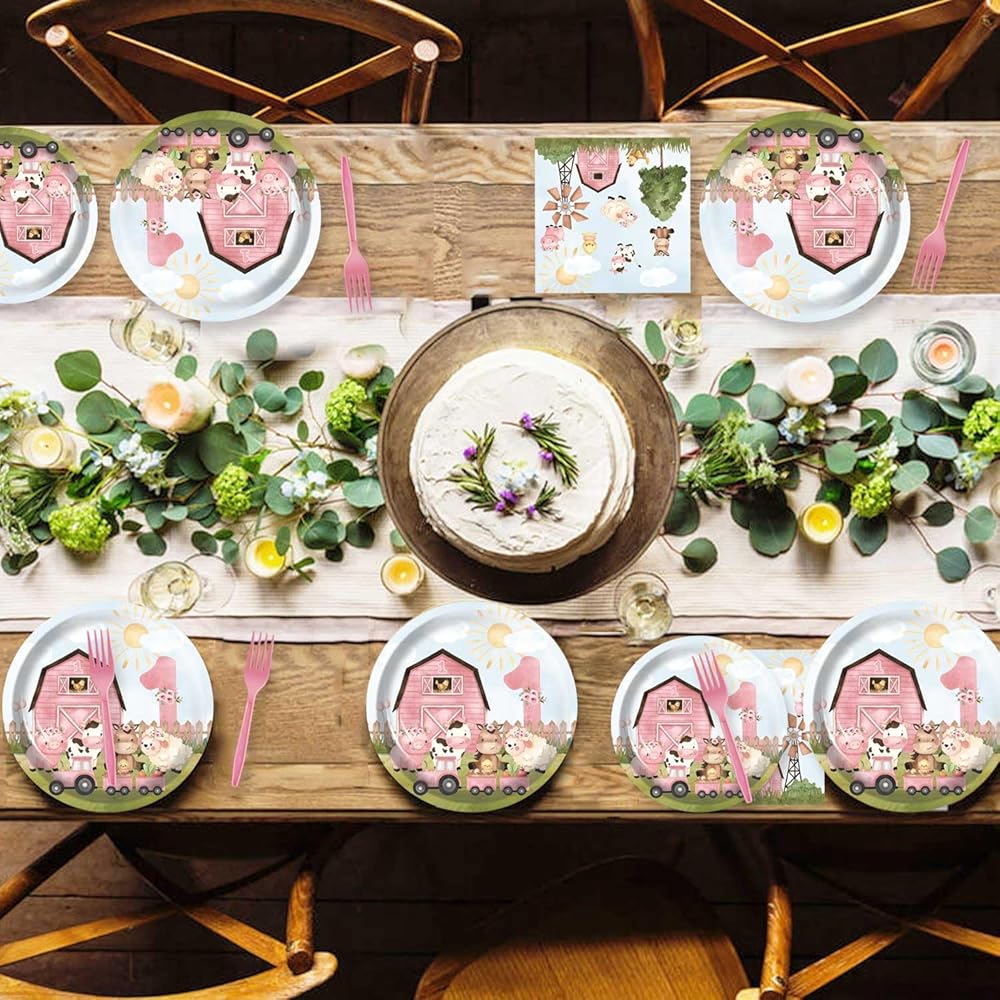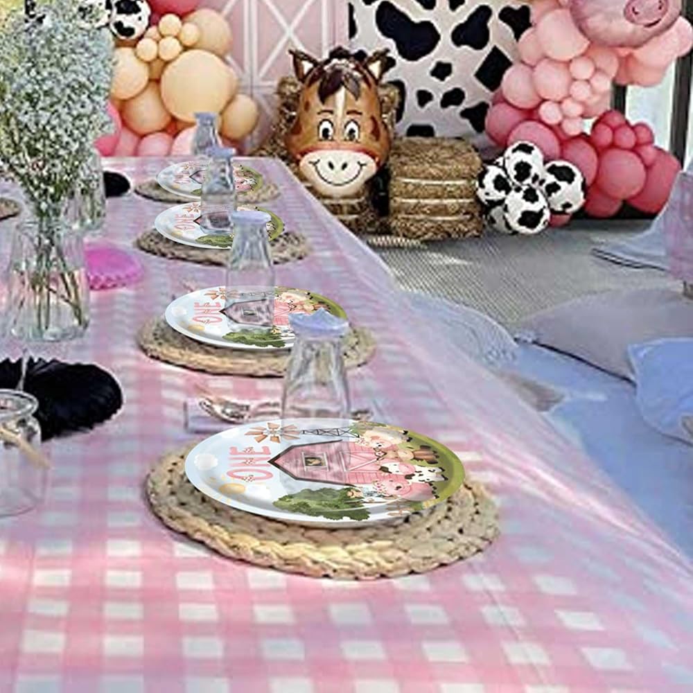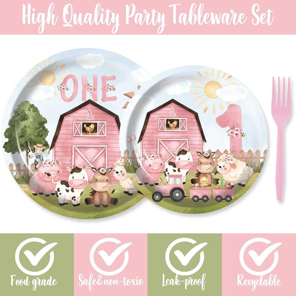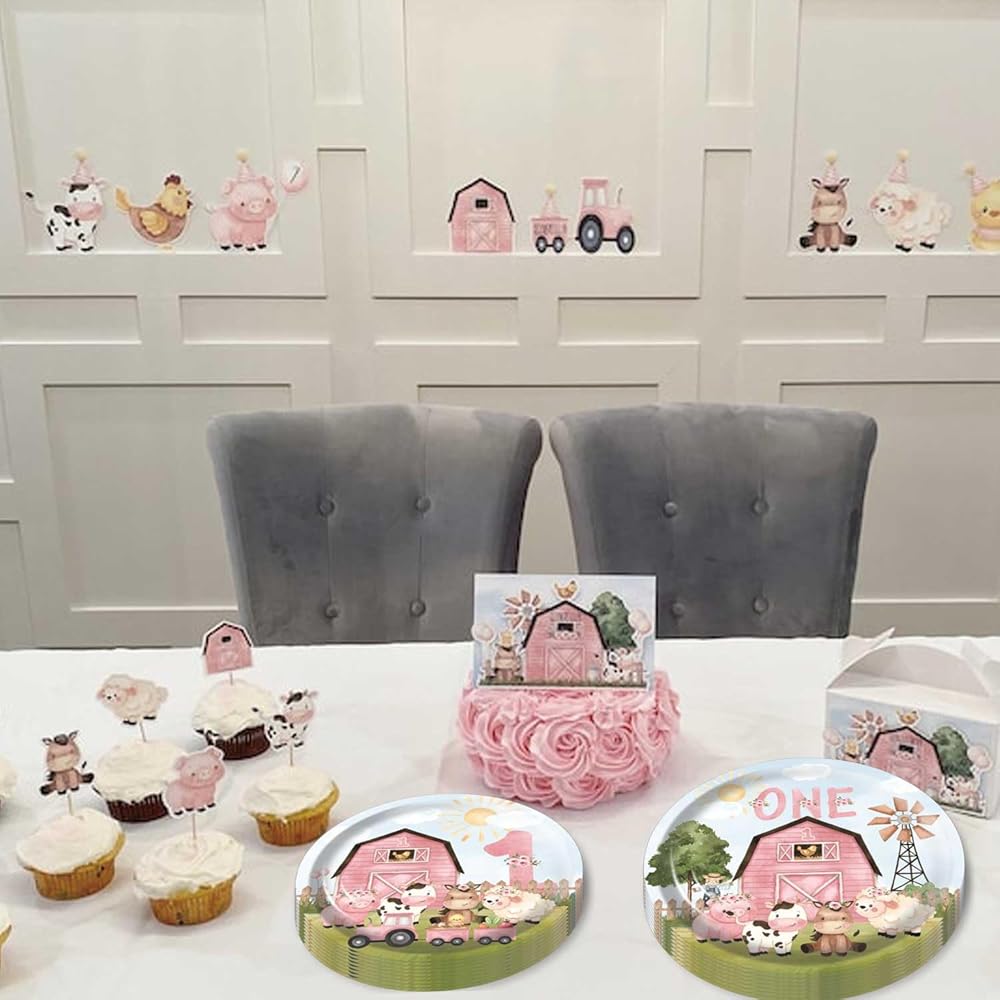- 🎁MATERIALS: farm pink girl first birthday party Plates made of high-quality materials.