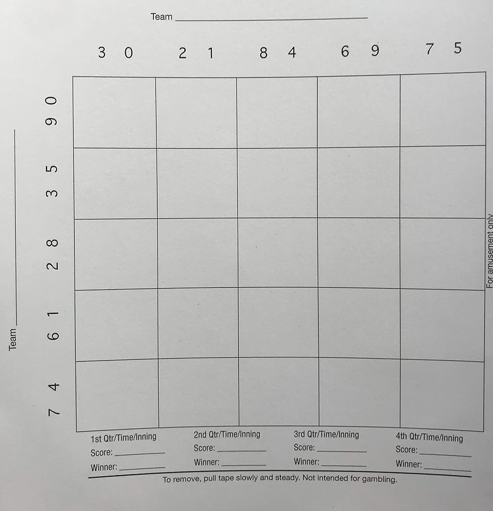 Great for any Bar, Tavern, House Party, Tailgating Party, or sporting event get together. Includes (20) Football Square Sheets on Heavyweight Card Stock. Each card is able to hold 25 squares. Each strip card holds 10 names with a Bonus #. SO MANY DIFFERENT WAYS TO PLAY AND WIN: You can use these for so many sports. Football, Baseball, NASCAR, Basketball, Soccer, and more. Professional games, Championships (SuperBowl, World Series, World Cup, Indy 500, etc). You are only limited by your own creativity. We also include full instructions with the package to help you along.
