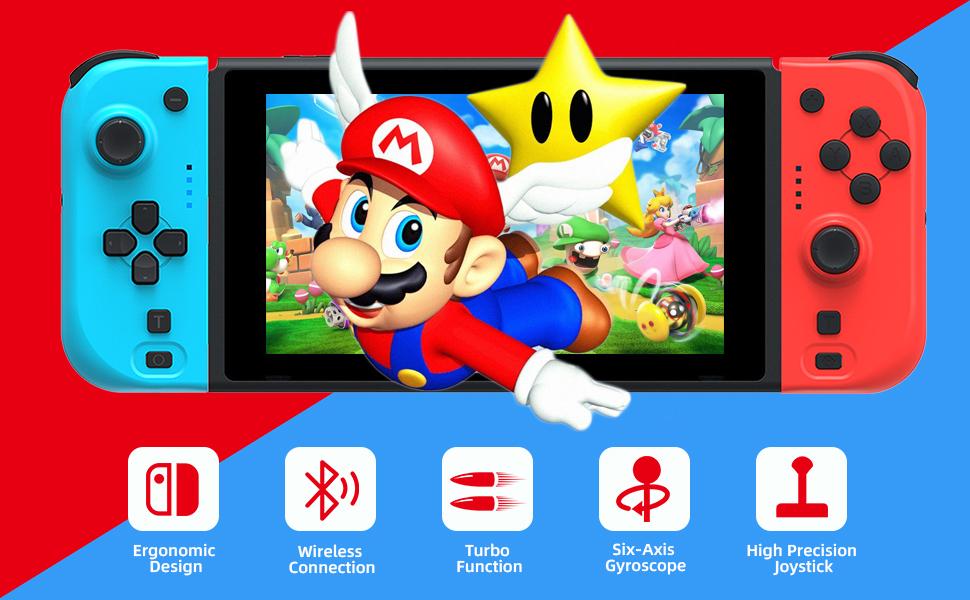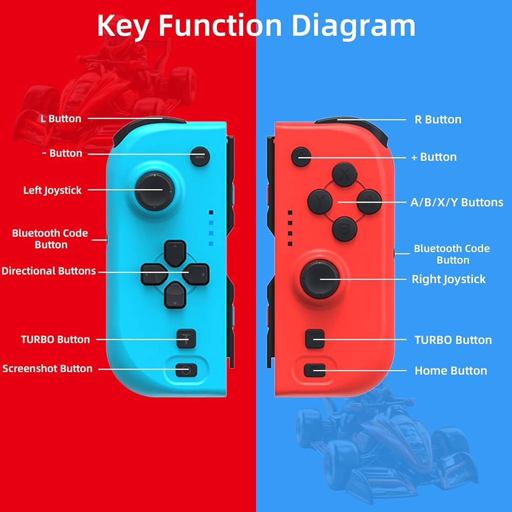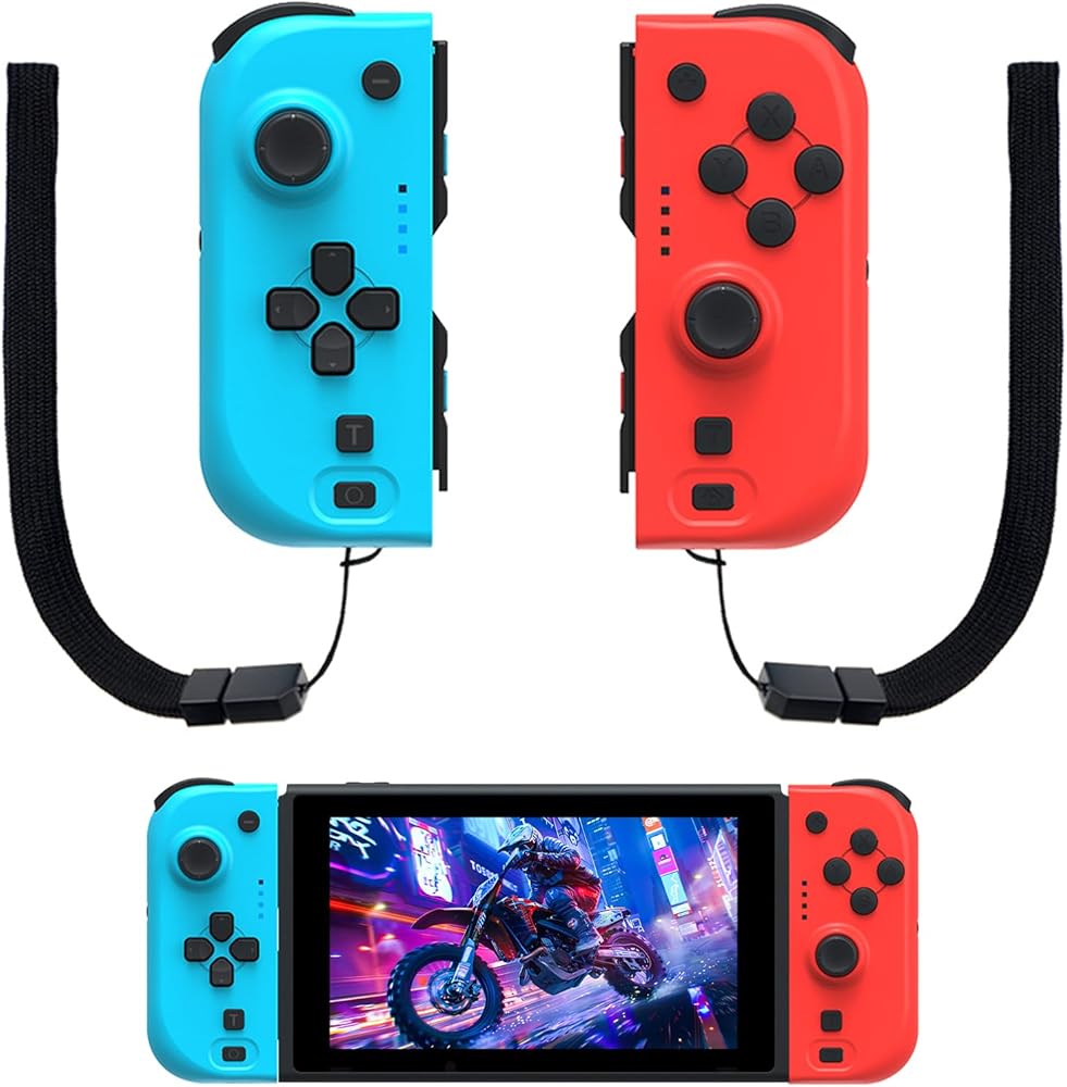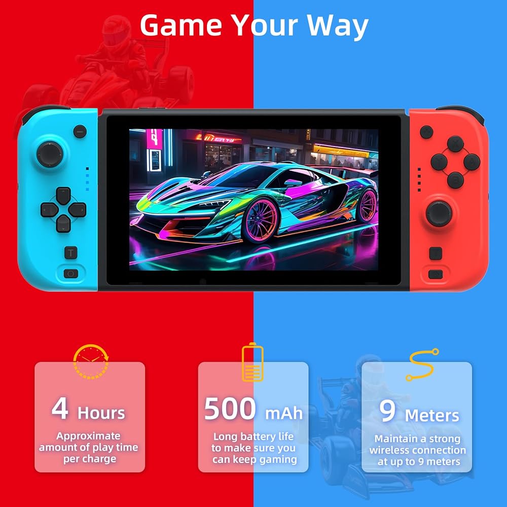 وحدة تحكم NexiGo Switch Joypad للتبديل/تبديل OLED، استبدال عصا التحكم لوحدة التحكم بالتبديل، لوحة ألعاب Joypad (L/R) مع محور جيروسكوبي مزدوج الصدمات قابل للتعديل (أحمر وأزرق)