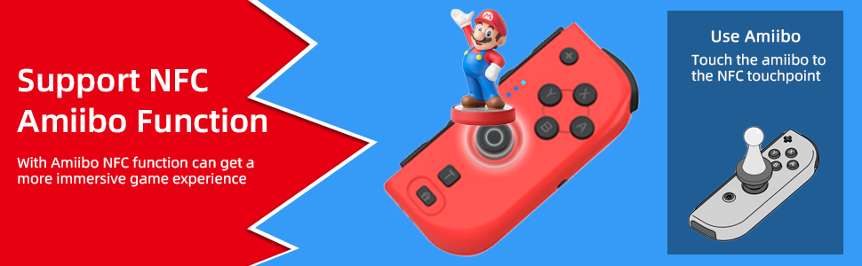 【طرق لعب متعددة】ثلاثة أوضاع للعب الألعاب مع الأصدقاء، وضع سطح الطاولة، ووضع التلفزيون، والوضع المحمول باليد. شارك مع الأصدقاء للاستمتاع بالحركة متعددة اللاعبين في الألعاب المدعومة. محتويات المجموعة: Joypad (L) x1، Joypad (R) x1، كابل شحن USB x1، دليل x1. يرجى ملاحظة دعم مستشعر Amibo وNFC، ولا يوجد دعم Ring-Con.