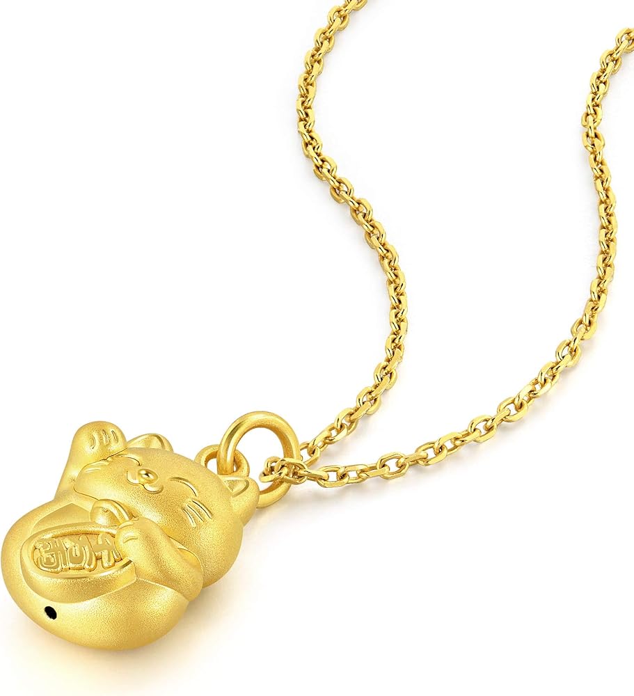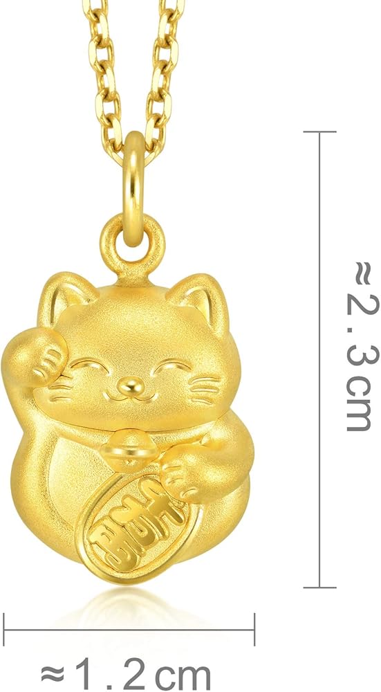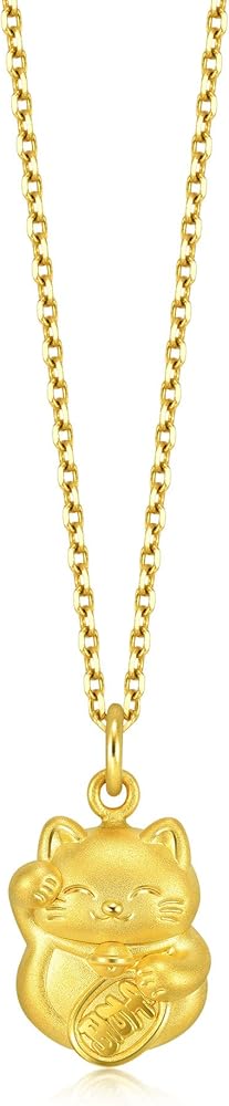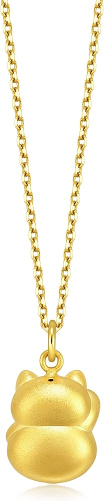قلادة CHOW SANG SANG 999 24K من الذهب الصلب Maneki Neko Lucky Cat Charm للنساء 91976P [لا تشمل القلادة]