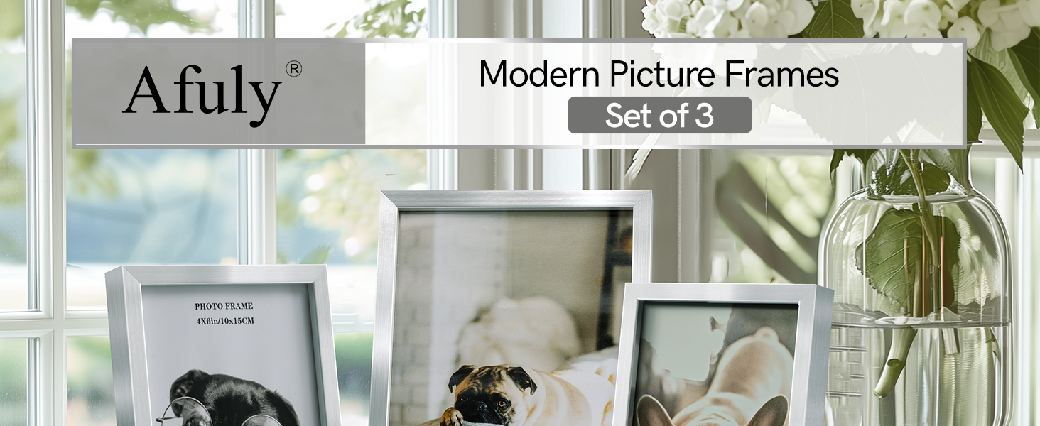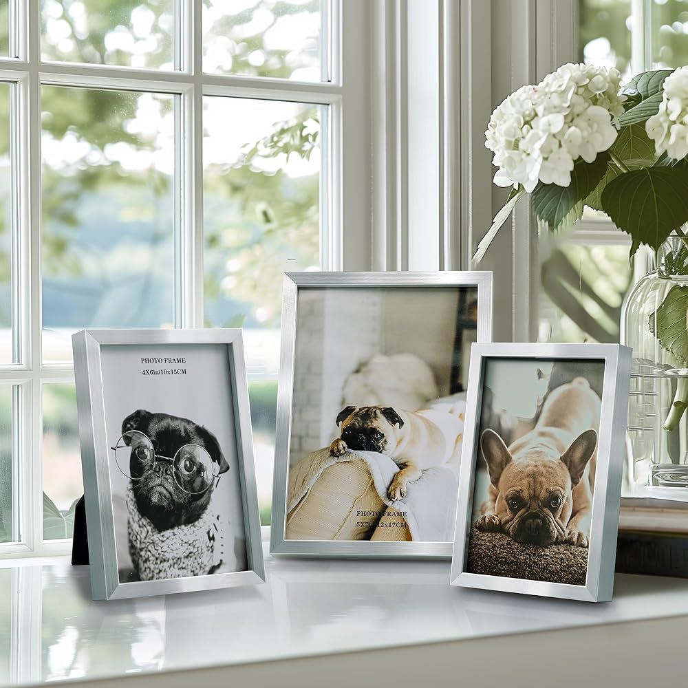 إطارات صور Afuly مقاس 5 × 7 مقاس 4 × 6 إطار صورة مكتبي مجموعة من 3 قطع مقاس 5 × 7 4 × 6 لعرض الصور على الحائط على سطح الطاولة ديكور منزلي حديث هدايا زفاف لأعياد الميلاد لأصدقاء العائلة، فضي