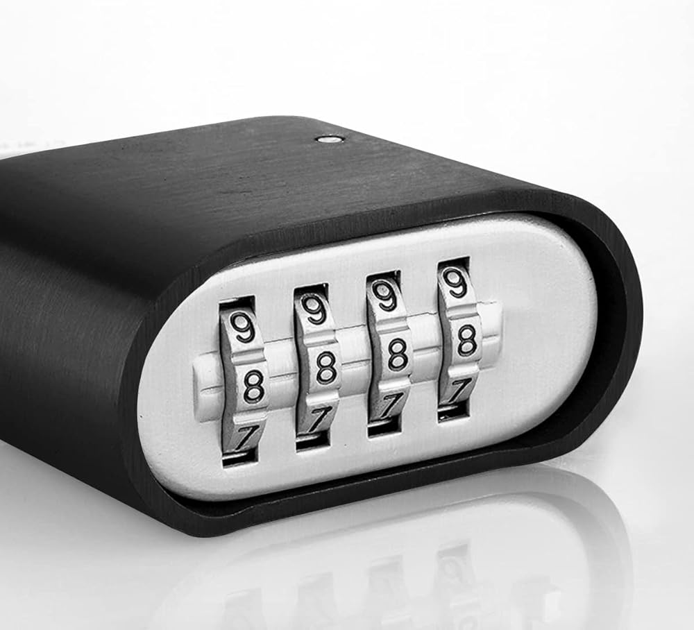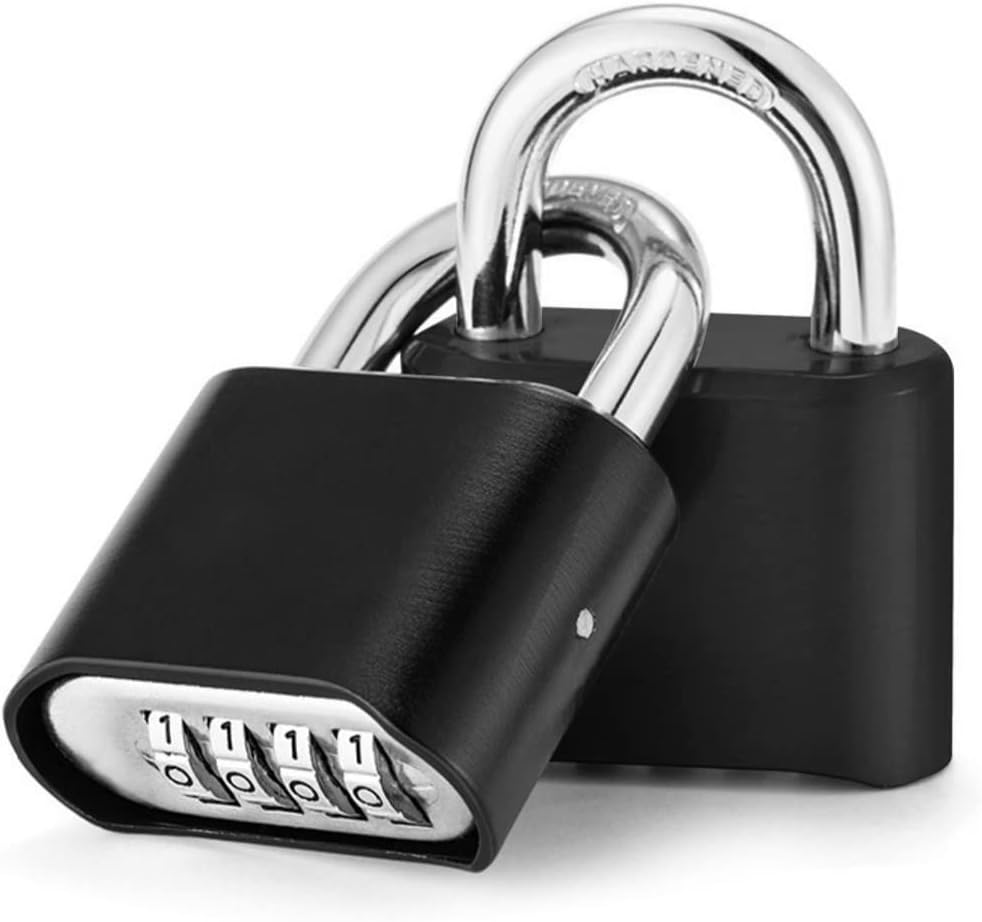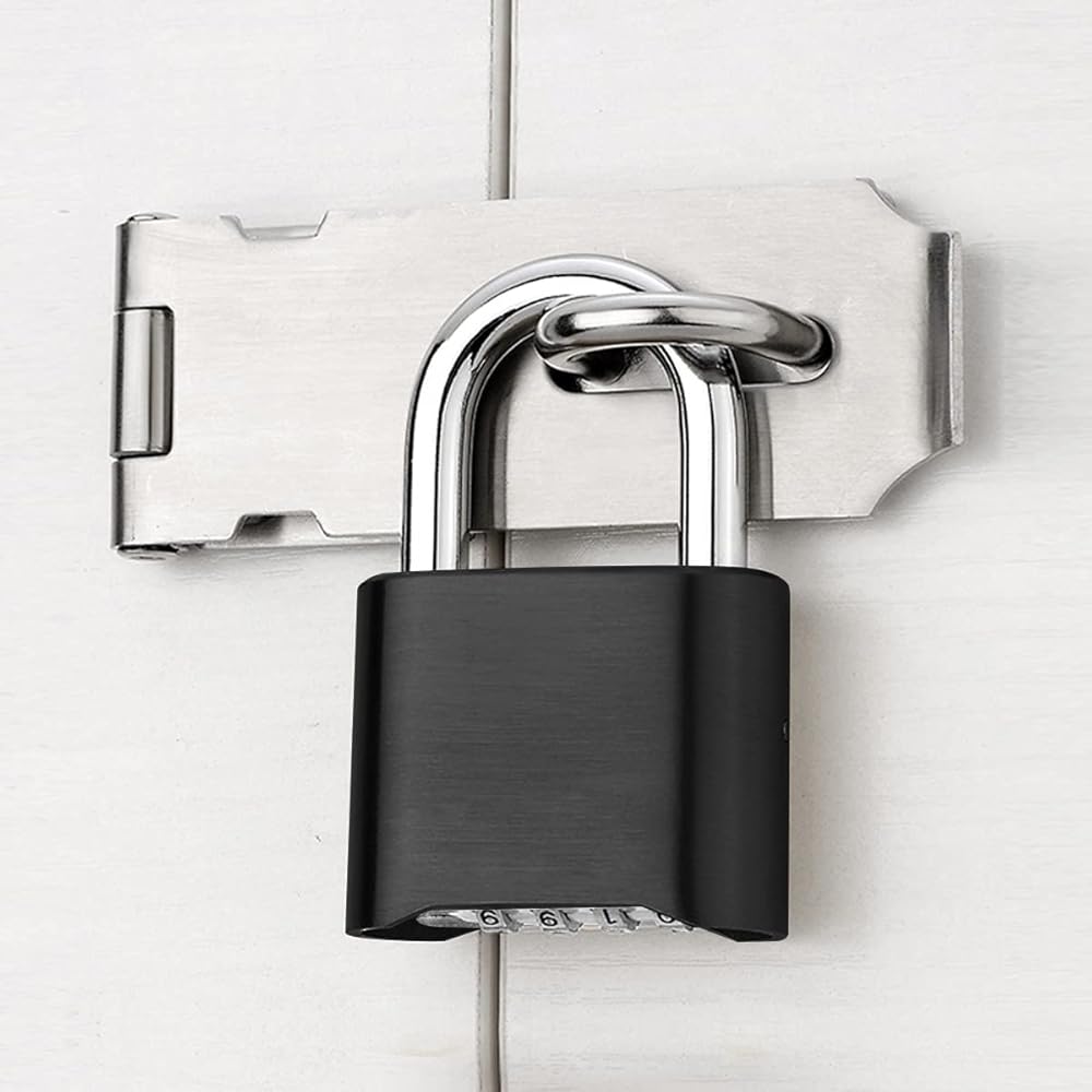 قفل مركب، قفل داخلي وخارجي، قفل مركب قابل لإعادة الضبط، قفل مكون من 4 أرقام مع مجموعة (أسود، قطعتان)