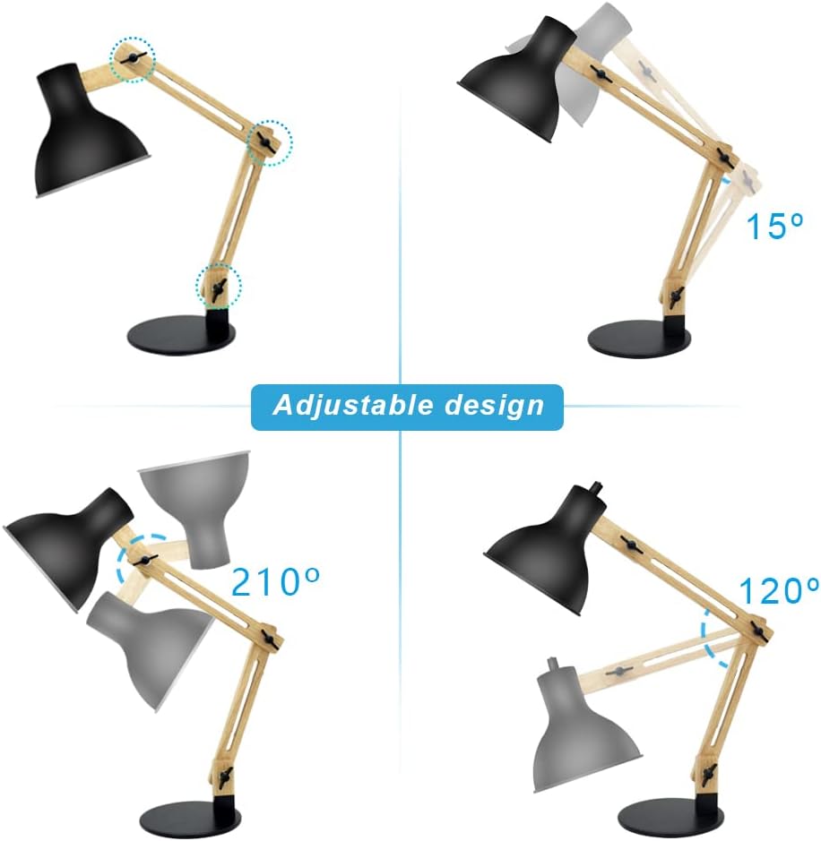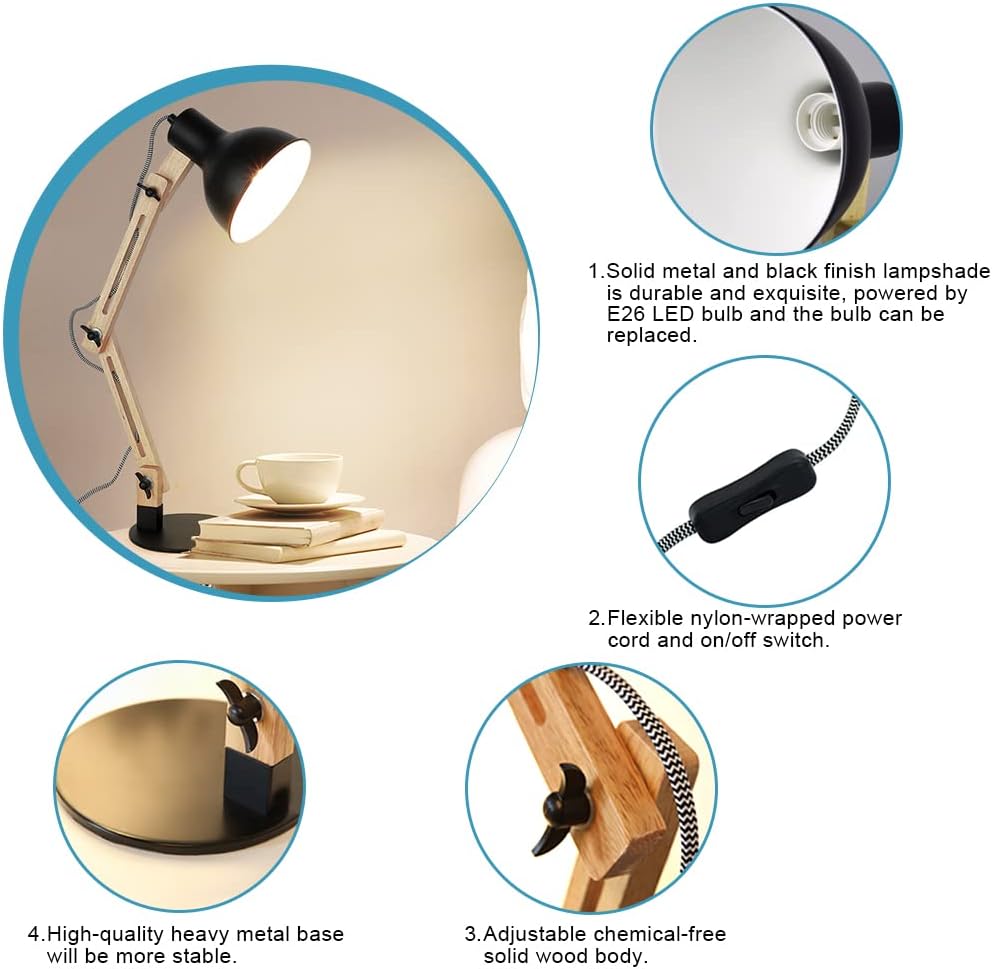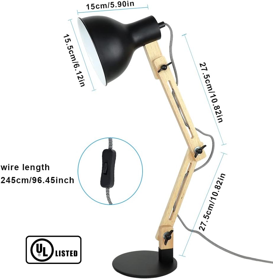 【مواد مختارة وجودة ممتازة】: ذراع من الخشب الصلب، ظل وقاعدة معدنية مضادة للصدأ، سلك طاقة مرن مغلف بالنايلون (الطول 94.5 بوصة)، لمبة E26 مدرجة في قائمة UL، مصباح المكتب هذا هو مزيج مثالي من الحرفية الرائعة والحديثة تصميم.