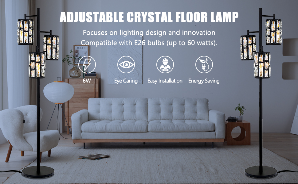 توافق متعدد الاستخدامات - يأتي المصباح الأرضي الساطع مزودًا بـ 3 مقابس قياسية E26 مقاومة للحرارة (حتى 60 واط) حتى تتمكن من استخدام جميع مصابيح E26.