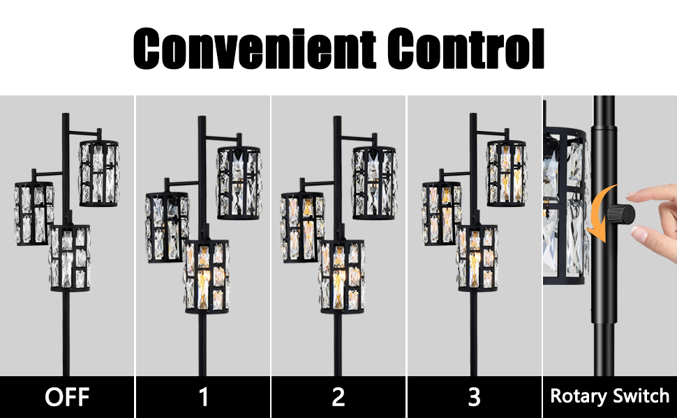 مفتاح دوار فريد - يمكنك تدوير المفتاح للتحكم في الإضاءة أو إيقافها، بالإضافة إلى أن هناك ثلاثة أوضاع فريدة لإضاءة درجة واحدة أو اثنتين على التوالي، وبالطبع هناك أيضًا ثلاثة ظلال مضاءة في نفس الوقت، وذلك لتجنب هدر الكهرباء، ويمكنك أيضًا الاختيار حسب تفضيلاتك!