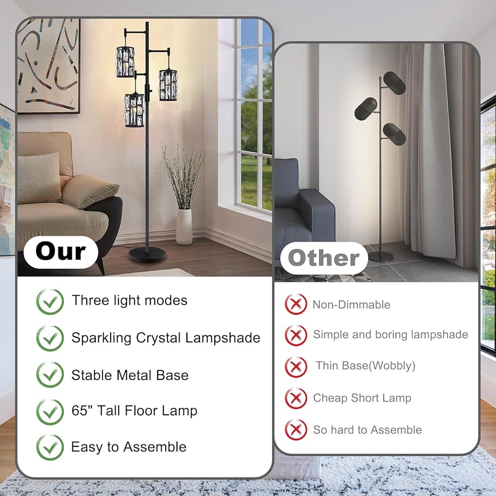 مادة عالية الجودة وقاعدة معدنية متينة - هذا المصباح الأرضي ذو 3 مصابيح مصنوع من مواد عالية الجودة لإنشاء قاعدة ثقيلة ومستقرة وعمود إضاءة لضمان الثبات حتى على السجاد. ثلاثة أقفاص خفيفة متينة وشديدة التحمل، ولا تنحني أبدًا. القاعدة موثوقة بدرجة كافية، فلا مانع من السقوط بسبب علامة إزعاج أو مشكلة.