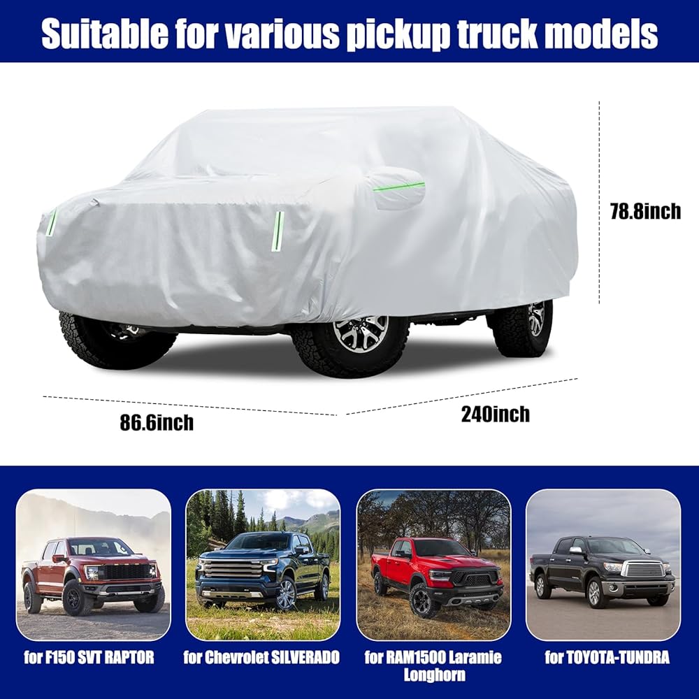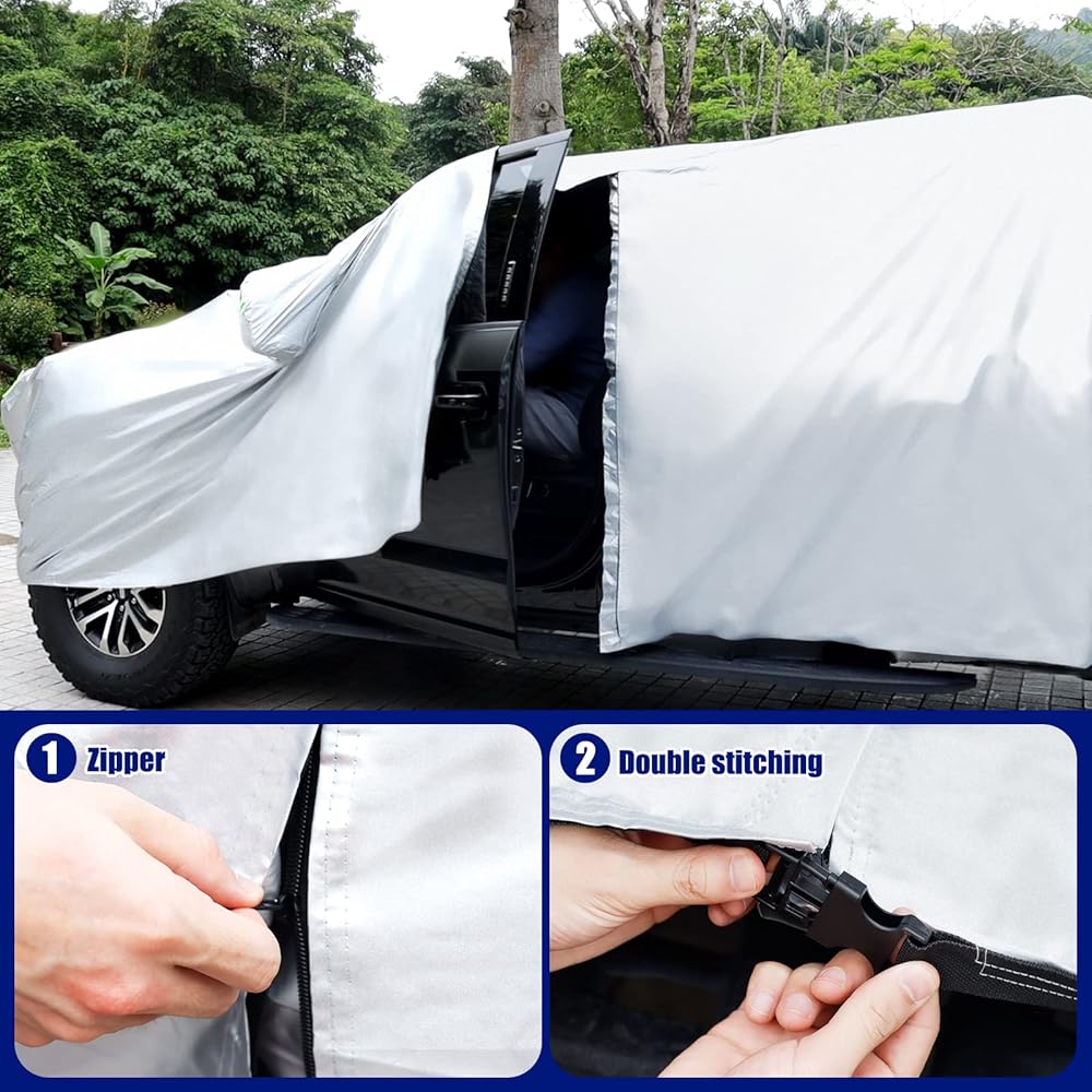 غطاء شاحنة Migaven مقاوم للماء مع سحاب للباب مناسب خصيصًا لسيارة Ford F150، Chevy Silverado، أغطية بيك اب مقاومة للماء في جميع الأحوال الجوية مع أشرطة إطارات وحقيبة مرآة