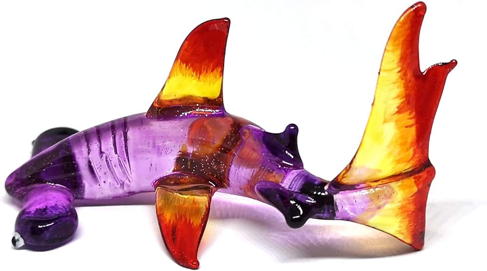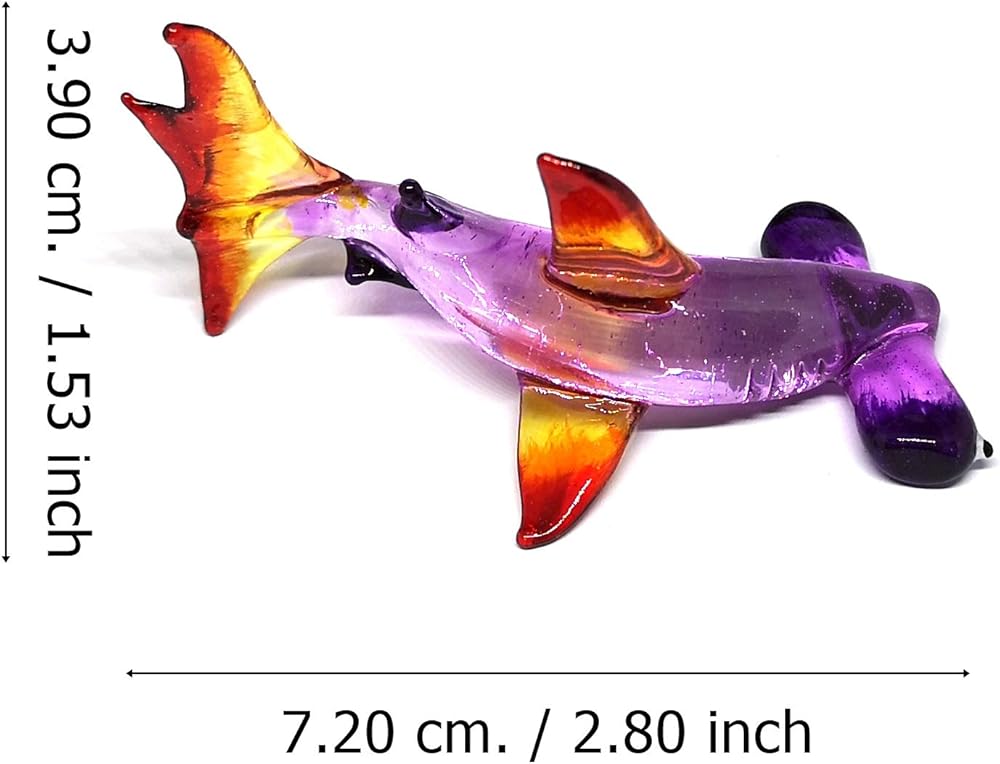 HAND BLOWN GLASS SHARK FIGURINE which is made in the technique of lampworking. SIZE: W 1.6" x L 2.8" x H 1.5" inches approximately.
