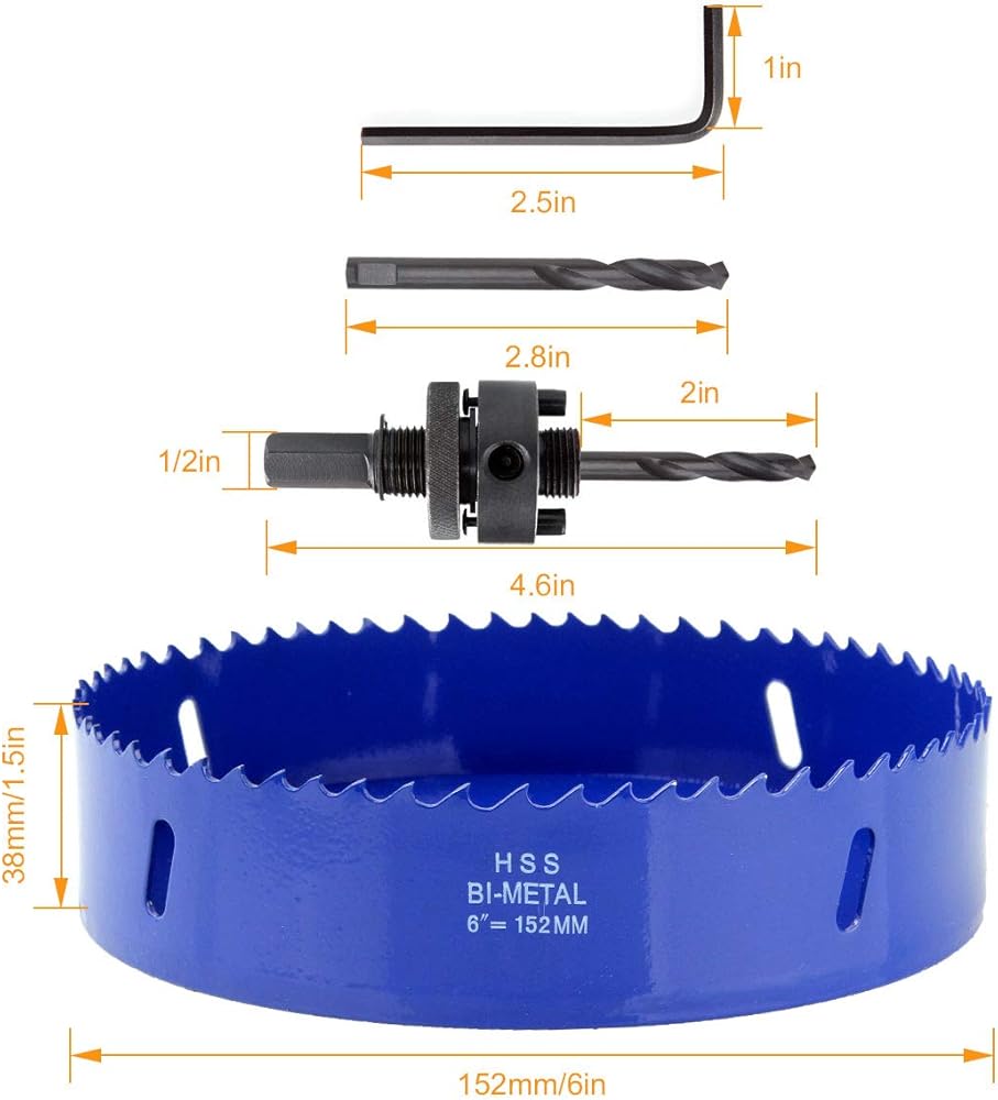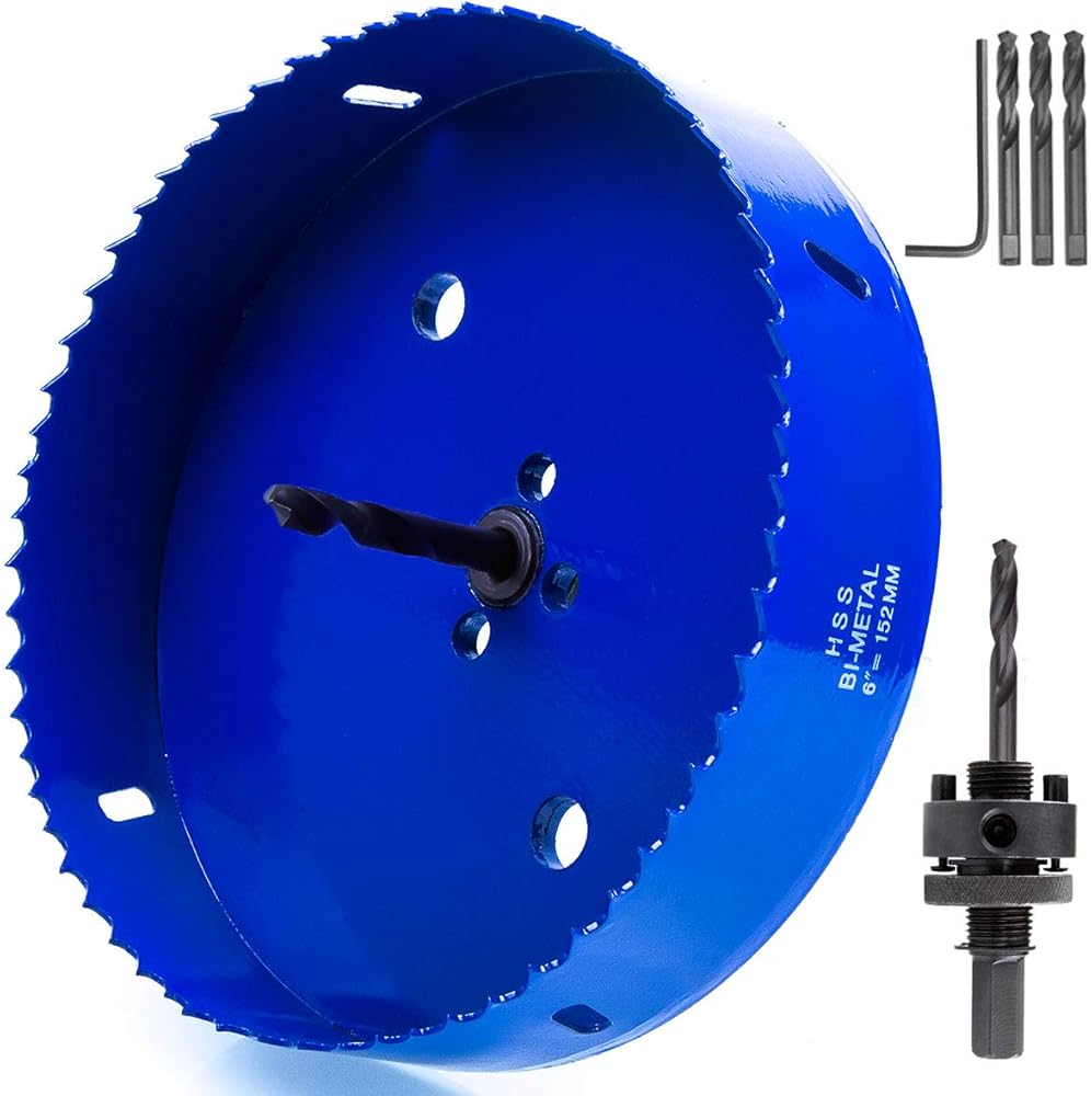 شفرة منشار ثقب مختارة مقاس 6 بوصة 152 مم لألواح ثقب الذرة/قاطع حفر ثقب الذرة ومحول لقمة مثقاب ساق سداسي للعبة ثقب الذرة/الفولاذ الكربوني والفولاذ الثقيل ثنائي المعدن (أزرق)