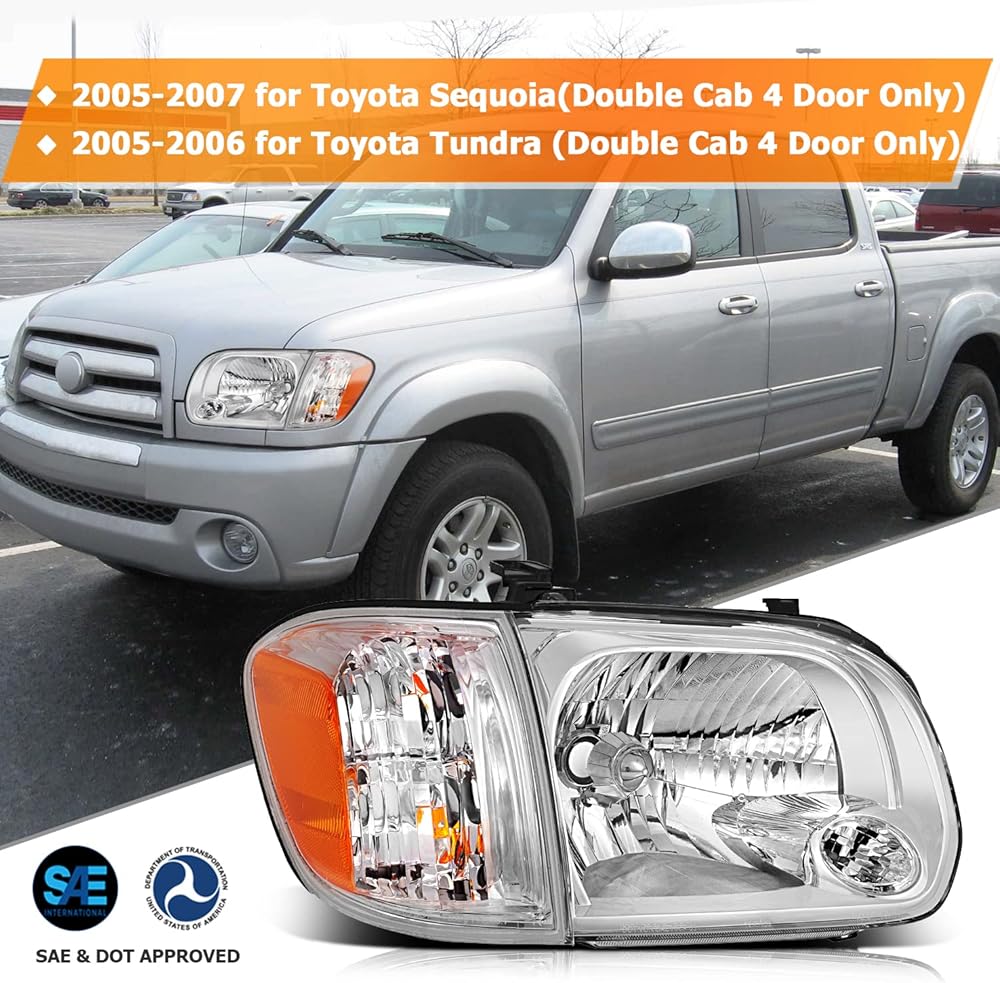 【تحقق من الملاءمة】- مجموعة المصابيح الأمامية لسيارة Toyota Sequoia 2005 2006 2007، لسيارة Toyota Tundra 2005 2006. التحقق من معلومات الملاءمة قبل الشراء سوف يقلل من المرتجعات والخسائر غير الضرورية