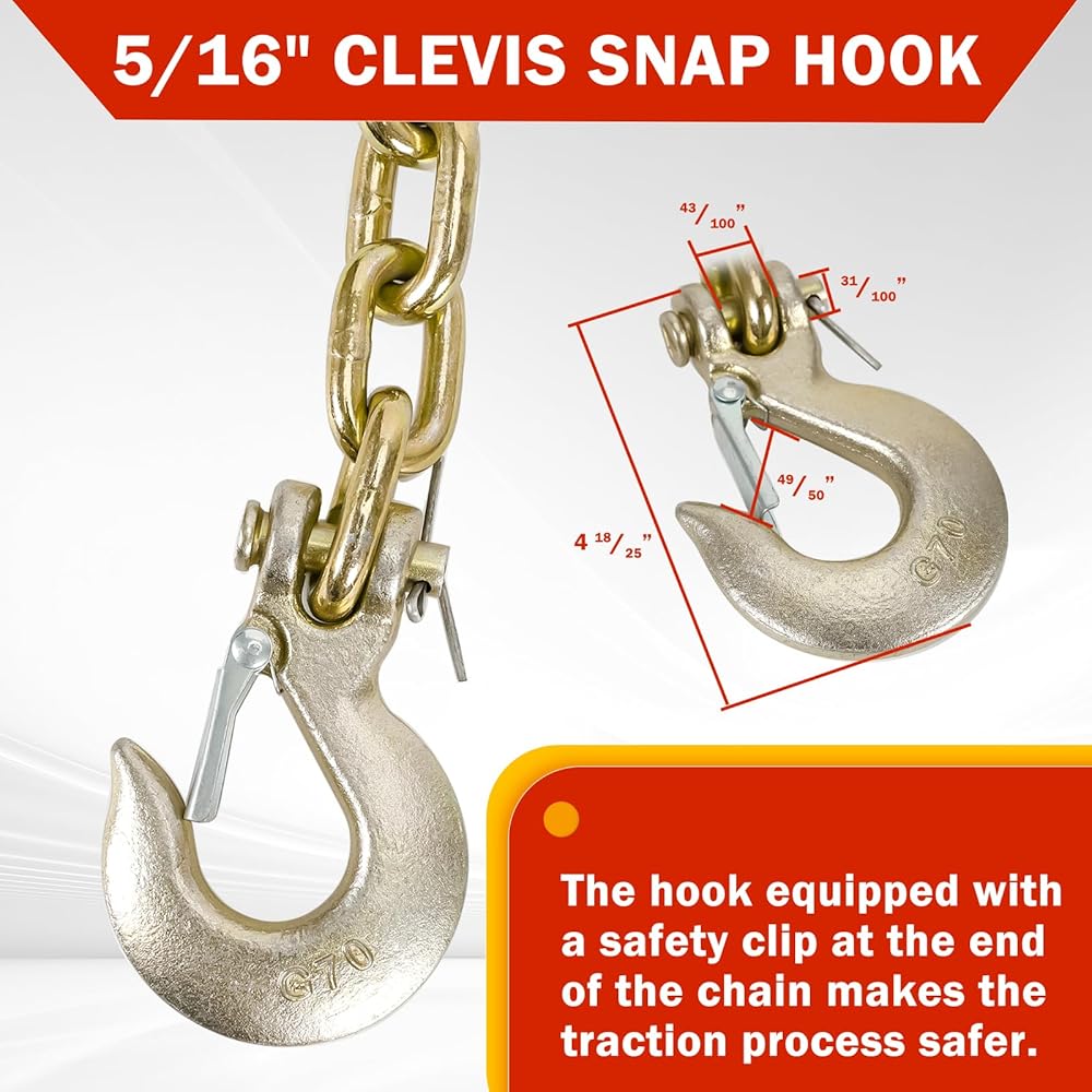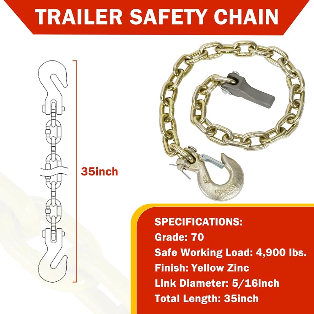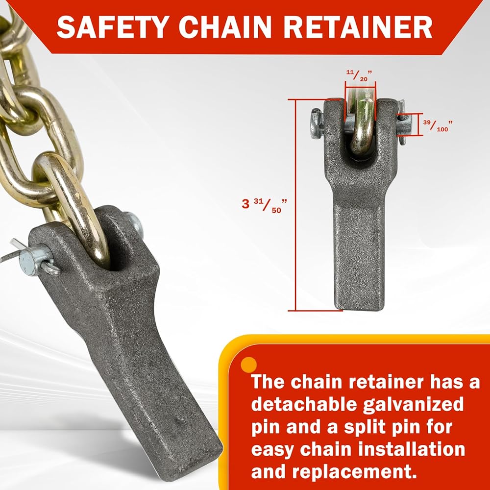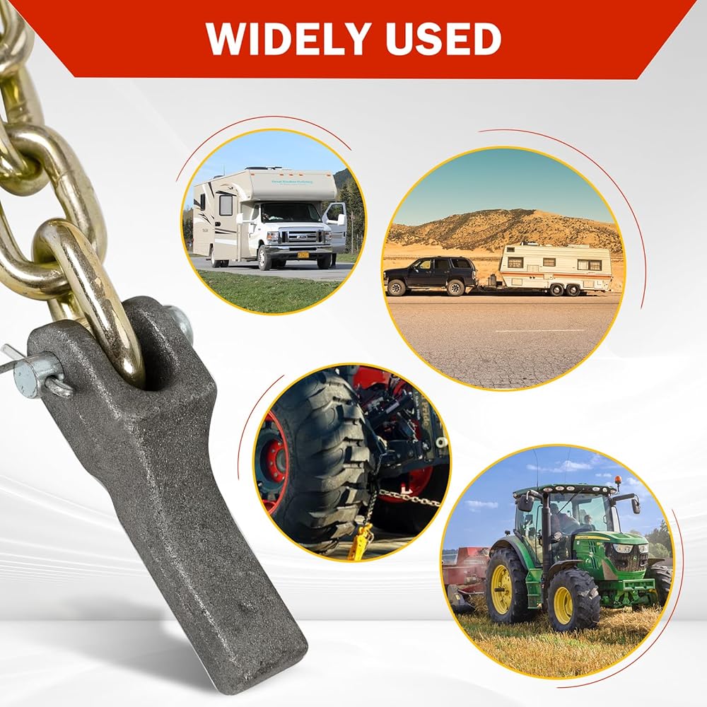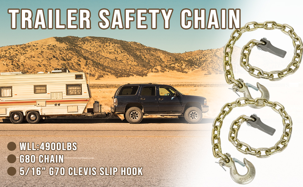 [تصميم احترافي] - مصمم للتوصيل من مقطورة إلى مركبة للمساعدة في منع الانفصال الكامل للسيارة عن المقطورة عند فصلها. (يوصى باستخدام سلسلتي أمان للمقطورة؛ يجب أن تصل كل سلسلة أمان إلى الوزن الإجمالي أو تتجاوزه المقطورة)
