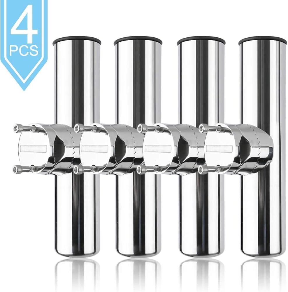 Yaegoo مشبك من الفولاذ المقاوم للصدأ على حامل قضيب الصيد - حامل قضيب تثبيت على السكك الحديدية حامل قضيب صيد قابل للتعديل (يناسب قضبان من 1 بوصة إلى 1-1/4 بوصة، 4 عبوات)