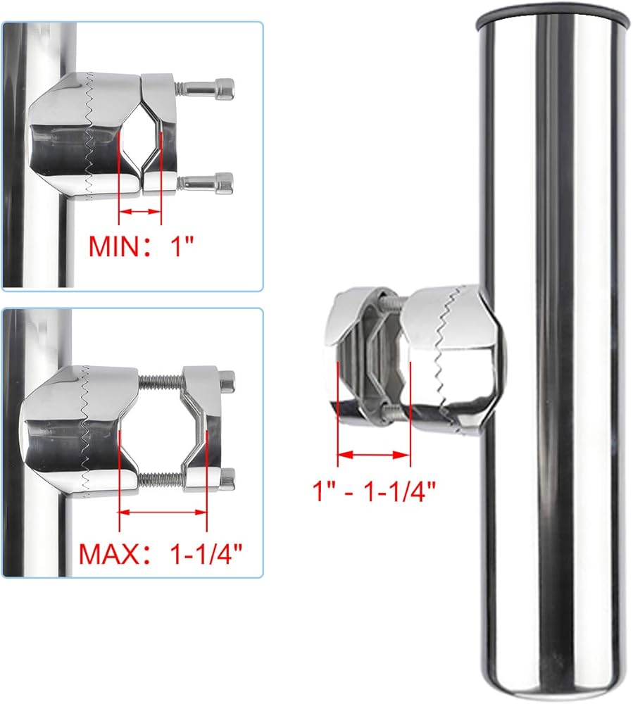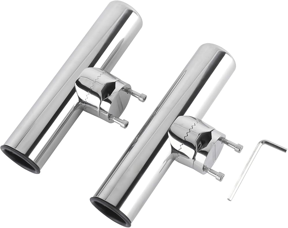 2 X Stainless Clamp on Fishing Rod Holder for Rails 1" to 1-1/4"