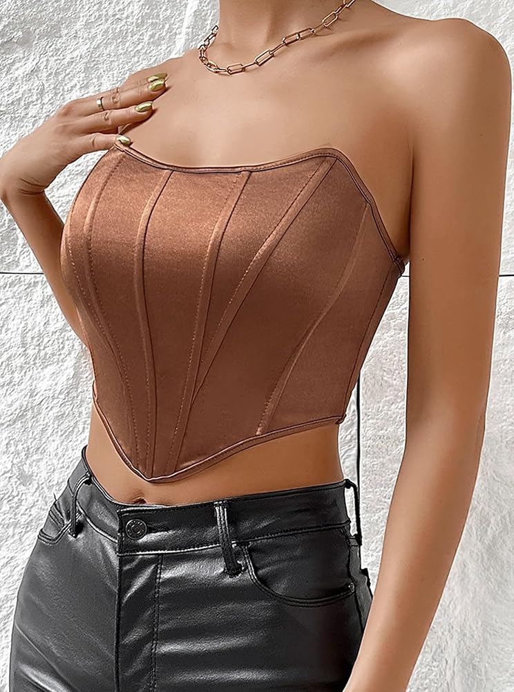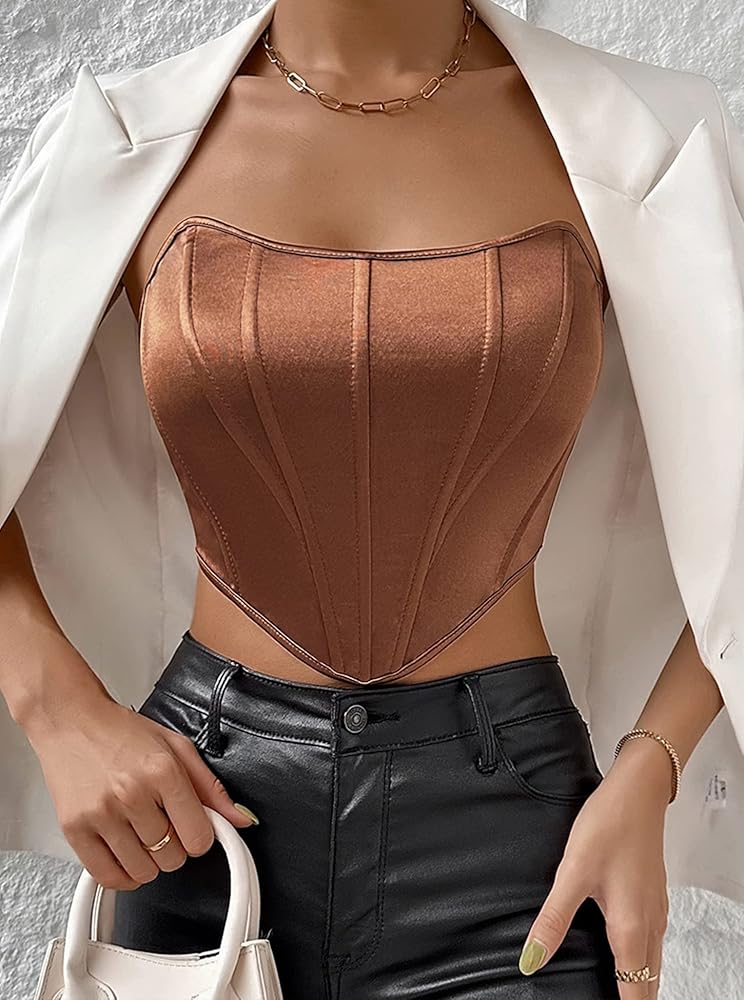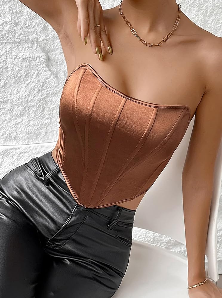 هل تبحث عن مشد مثير من الساتان يتميز بخط رقبة على شكل قلب بدون ظهر وبدون حمالات وتصميم جسم مجوف وتصميم علوي قصير؟ لا تنظر أبعد من "كورسيه الساتان" الخاص بنا!