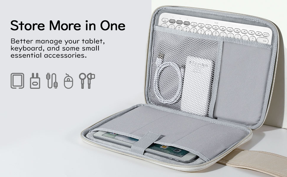【تخزين مريح】: عندما لا يكون جهازك اللوحي هو الشيء الوحيد الذي تحتاج إلى حمله، فهناك أيضًا حجرتان إضافيتان لتخزين كابلات الشحن والشواحن وبنوك الطاقة وأجهزة الكمبيوتر المحمولة وما إلى ذلك، باستثناء حجرة الكمبيوتر اللوحي. تتميز هذه الحافظة بسعة كبيرة وأقسام متعددة، مما يجعلها تلبي احتياجاتك التخزينية اليومية بشكل أفضل. لا مزيد من شراء حافظات متعددة لتخزين إكسسواراتك.