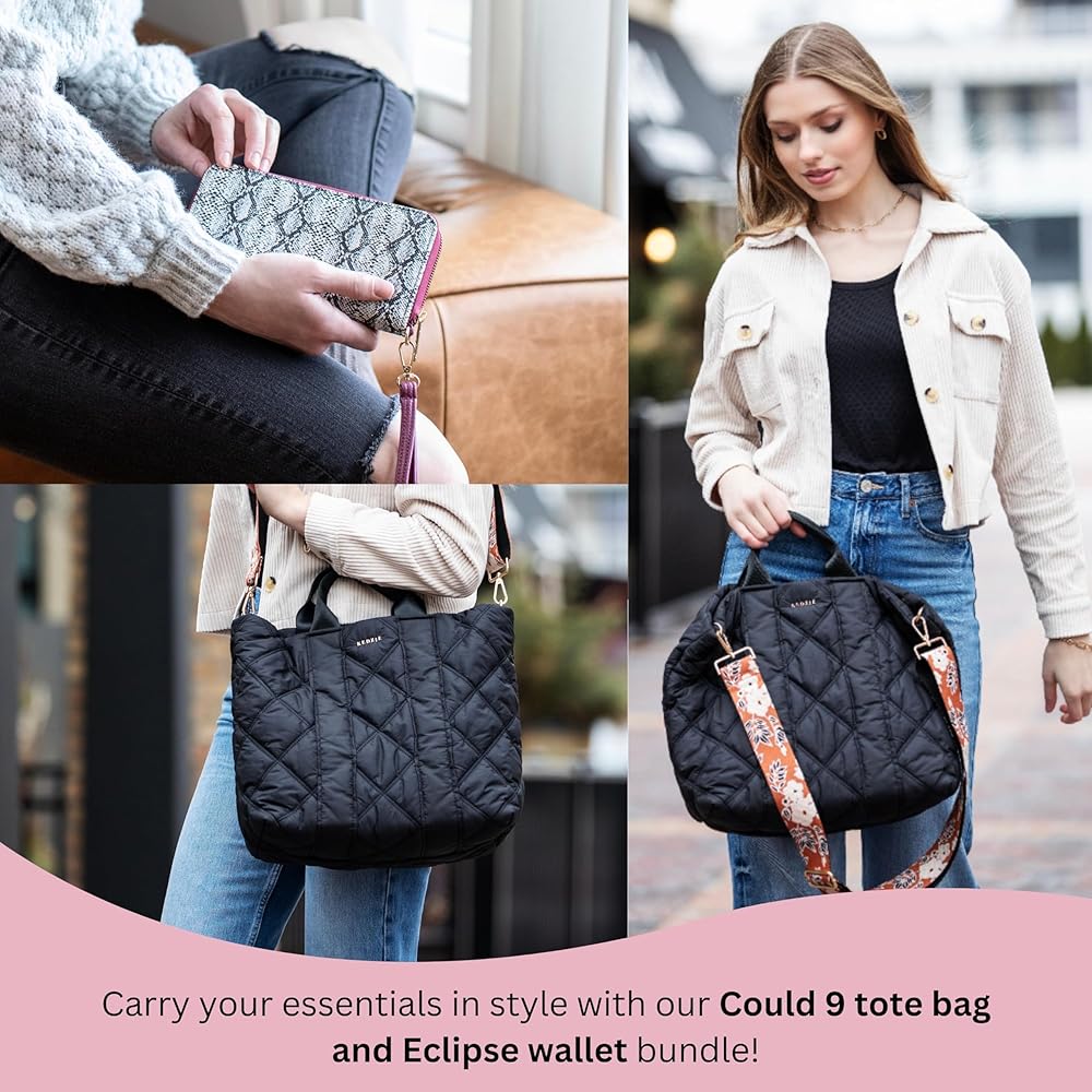 PERFECT COMBINATION: This bundle offers the perfect combination of style and versatility, allowing you to switch up your look with ease. Whether you're running errands or heading out for a night on the town, the Kedzie Cloud 9 tote bag and Eclipse zip-around wallet bundle is the perfect accessory to keep you organized and looking great.