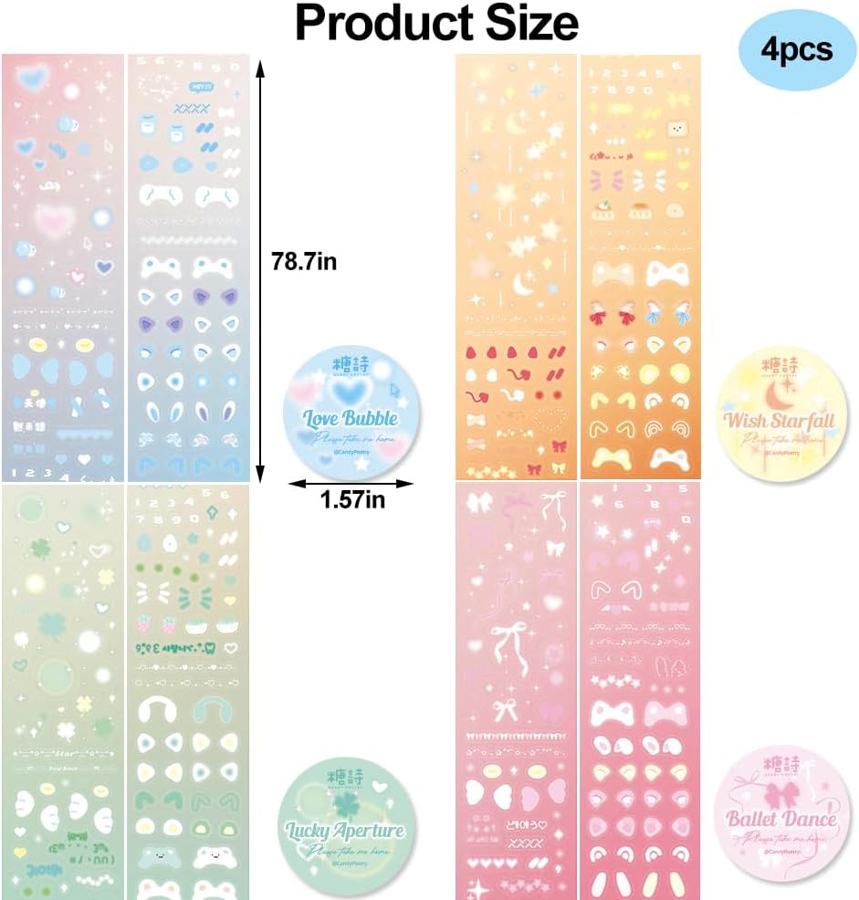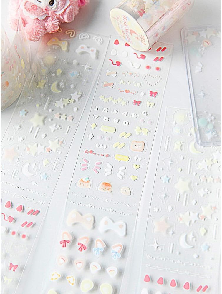These washi tape stickers printed with classic rabbit cat ear, bow, star, moon, love, little bear and number patterns, great for decoration cards, gift boxes, calendars, greeting cards, creative craft projects and more, making your production more exquisite.