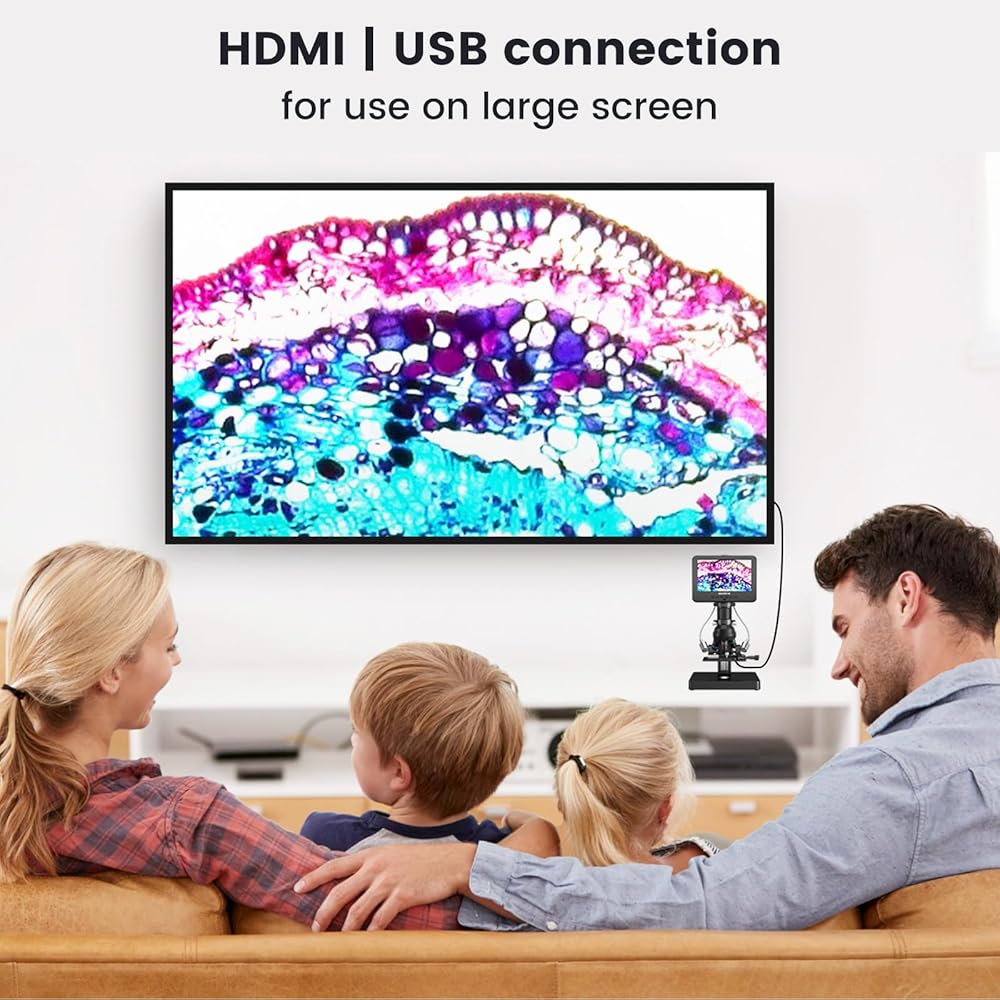 【مجهر رقمي HDMI عالي الوضوح 2160P 】مخرج HDMI لمجال رؤية أكبر، شاشة IPS LCD مقاس 7 بوصة تدعم شاشة العرض المزدوجة للعرض والمشاركة المتزامنة المتعددة. التقط صورًا بدقة 24 ميجابكسل (5600*4200). تسجيل مقاطع الفيديو بدقة UHD 2880x2160 24 إطارًا في الثانية؛ FHD 1920x1080 60 إطارًا في الثانية/30 إطارًا في الثانية؛ HD 1280x720 120 إطارًا في الثانية.