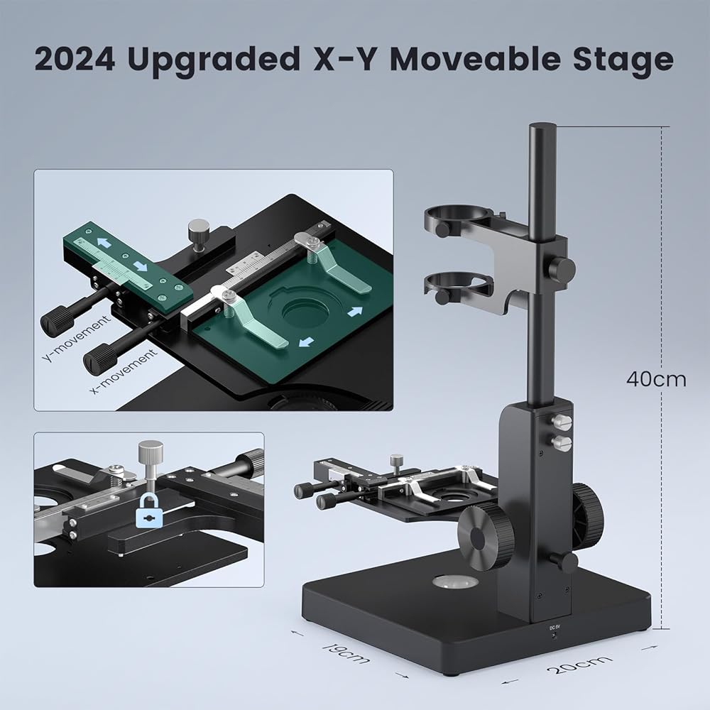 【قاعدة وقاعدة متحركة معدنية X-Y قابلة للتعديل】فرجار المرحلة المتحركة X-Y مع موازين للتعديل الأفقي والرأسي، من السهل تشغيله لتحريك الشرائح البيولوجية من أجل مراقبة أو قياس دقيق.