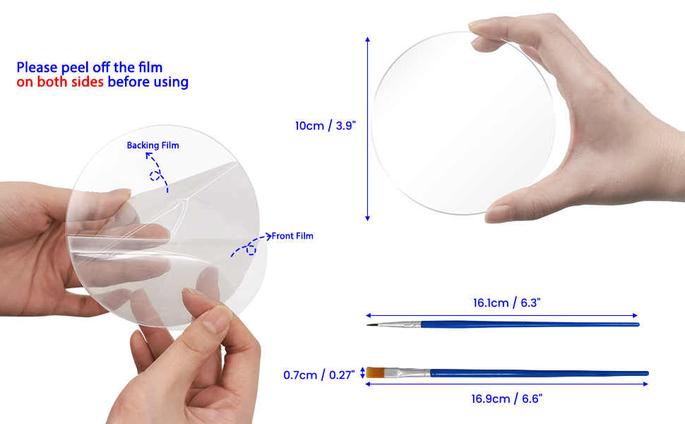 【 طبقة واقية عليه 】- أوراق الأكريليك الشفافة المستديرة مغطاة بطبقة رقيقة على كلا الجانبين لحماية الأوراق الشفافة من الخدش. يرجى تقشير الطبقة الواقية قبل الاستخدام
