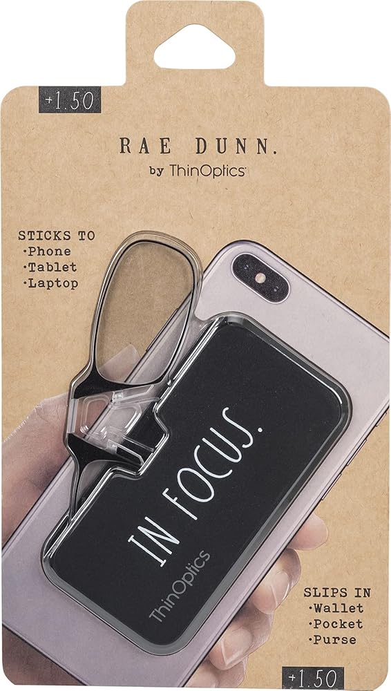 "Rae Dunn is a renowned clay artist based in the San Francisco Bay Area in California. While she is most well known for her wide range of housewares, Rae's distinctive longhand wordmarks now touch many product categories and are available nationwide. Rae Dunn Eyewear is stylish, versatile and functional. The highly sought after eyewear collection, was inspired by the artist's signature aesthetic, striking a thoughtful balance between playfulness and simplicity. The move into Eyewear was motivated by the artist's personal need for reading glasses in her everyday life. Rae tailored every detail of the collection down to the packaging. In partnering with Thin Optics, Rae Dunn has brought her distinct flair to the design of the pod case. "These readers are so simple and thin and lightweight. They sit comfortably on your nose and you can attach the cute case to the back of your phone so they are always handy.” – Rae Dunn