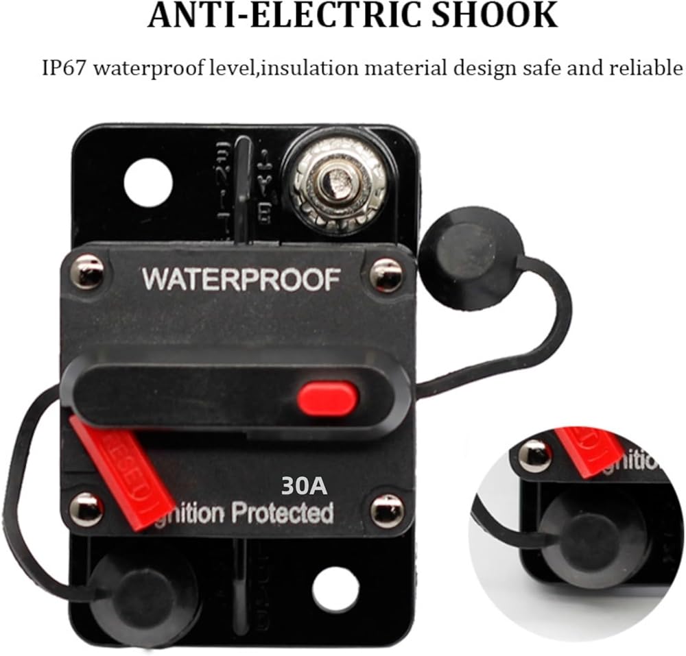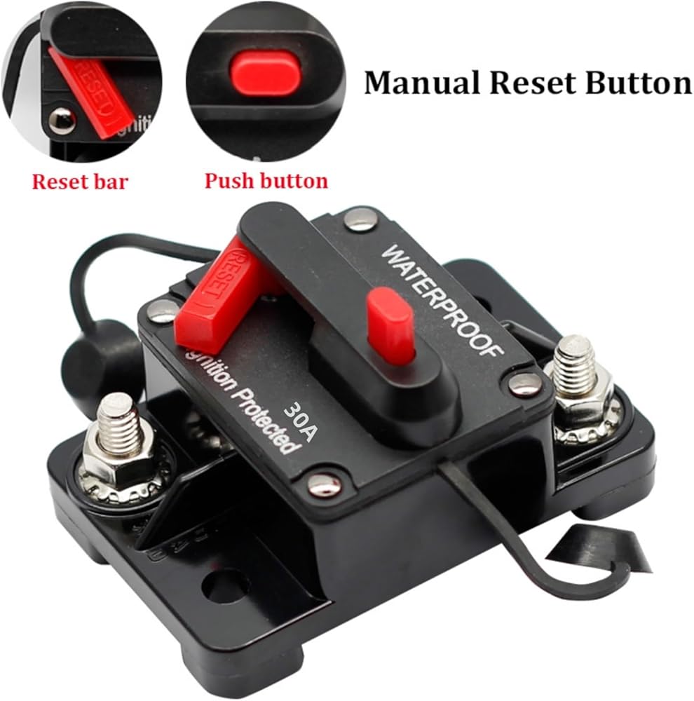 This 60A circuit breaker is designed to have a manual button and a reset arm, which makes the 12 volt circuit breaker become a reusable inline fuse switch.