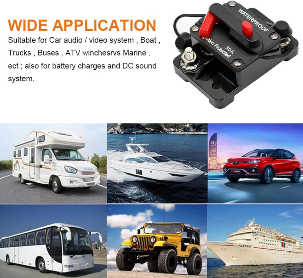 This 60 amp marine circuit breaker is capable of both automotive and marine use, suitable for car, automotive, RV, trolling motor, boat, yacht, etc.