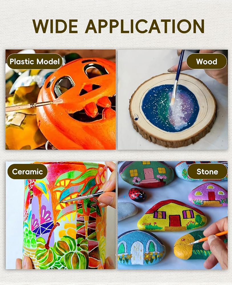 تطبيق واسع: طلاء أكريليك سريع الجفاف، ومقاوم للماء والبهتان، مناسب لمعظم الأسطح، لذلك لا تقصر إبداعك على مكان واحد، يمكنك تنوعًا في القماش، والحجر، والجدار، والخشب، والزجاج، والورق، والقماش، حجز الخردة والسيراميك وورق الحائط المزخرف وما إلى ذلك. فقط أطلق العنان لخيالك وأضف لمسة فنية إلى حياتك. مجموعة طلاء الأكريليك مثالية للفنانين المحترفين والأطفال والطلاب والمبتدئين ومحبي الفن للرسم والحرفية.