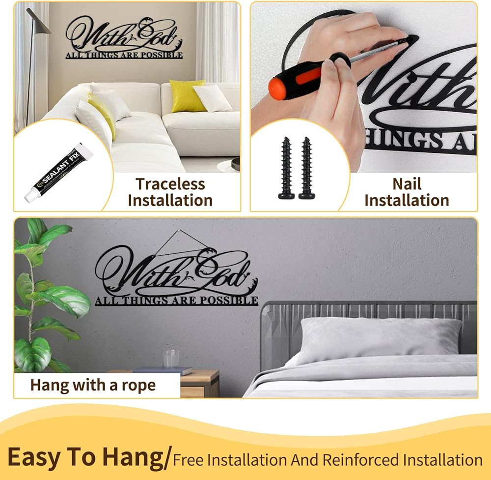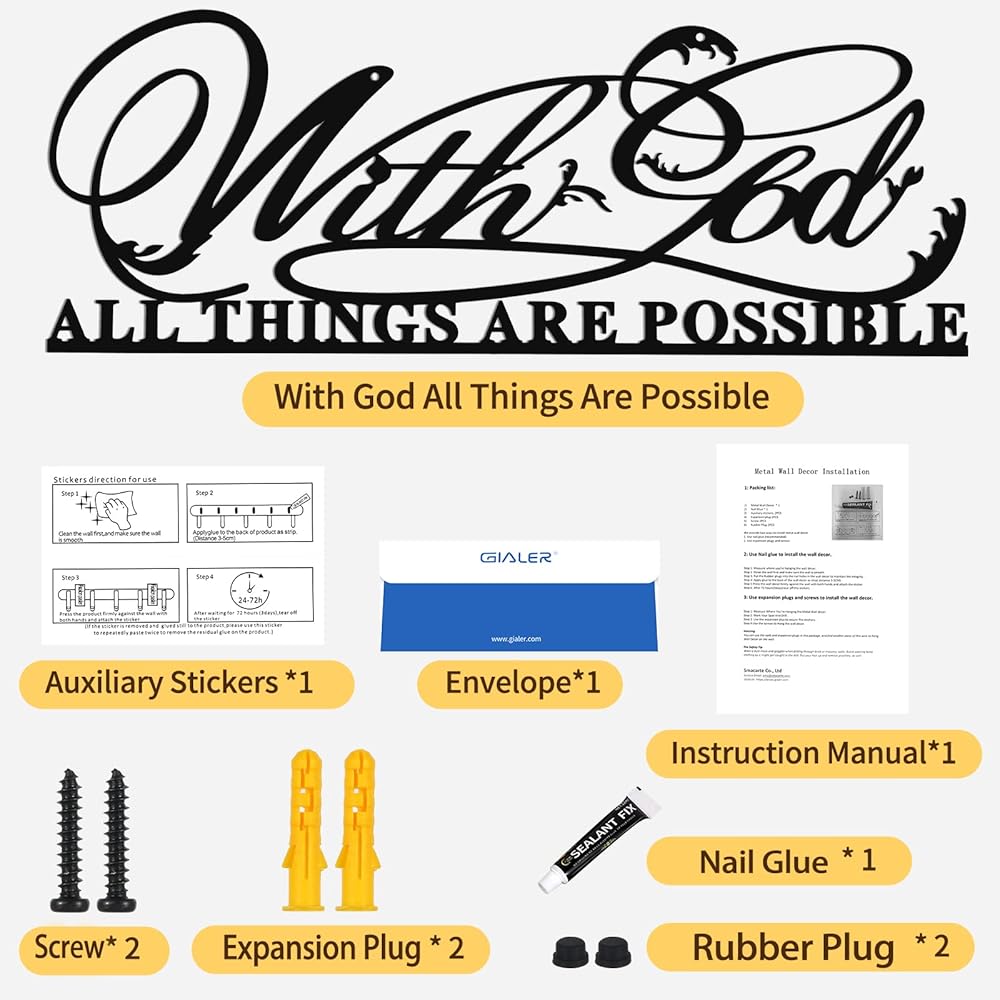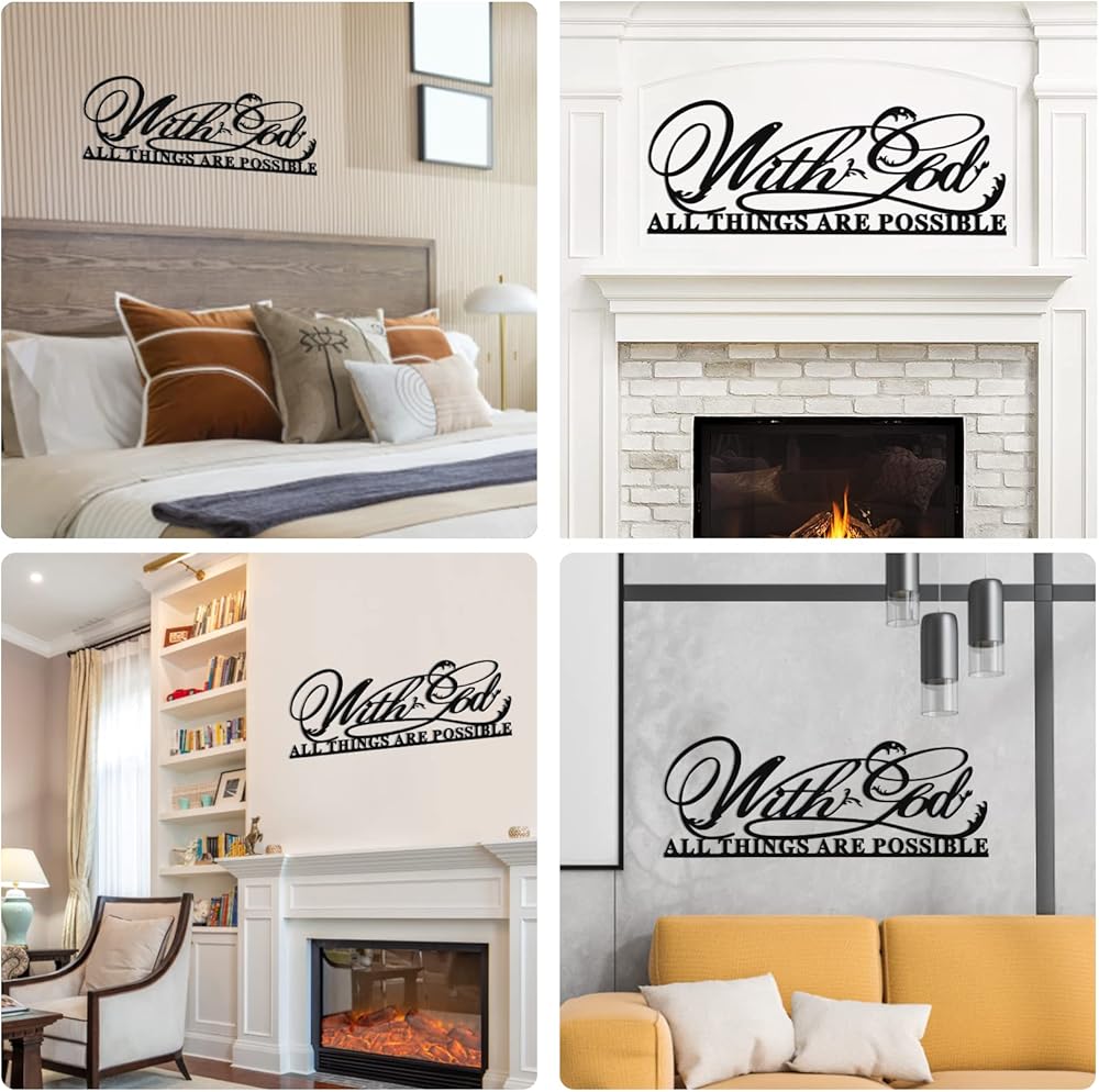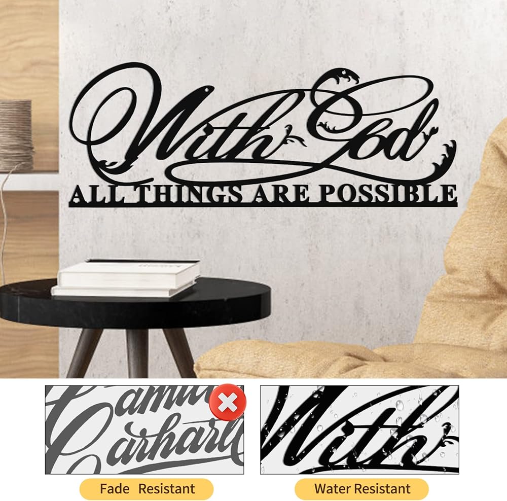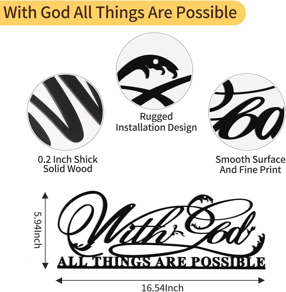 علامة With God All Things are Possible لتزيين الحائط المعدني، آيات كتابية دينية ملهمة باللون الأسود من الكتاب المقدس المسيحي، كل شيء ممكن مع أقوال ملصقات الحائط GOG الفنية (16.5 بوصة × 5.9 بوصة)