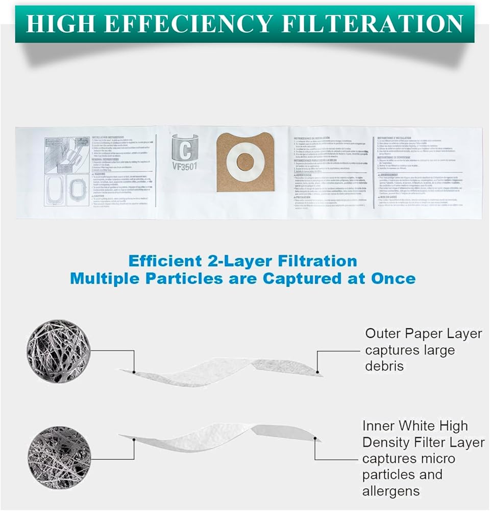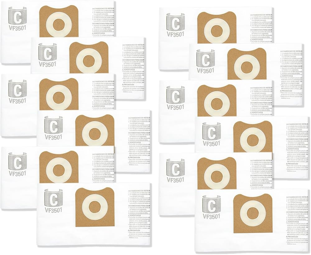 12 حزمة 23738 موديل VF3501 أكياس جمع الغبار متوافقة مع Ridgid/Workshop 3 إلى 4.5 جالون مكنسة جافة ورطبة، استبدال الجزء # 23738 VF3501 WS32045F، الحجم C