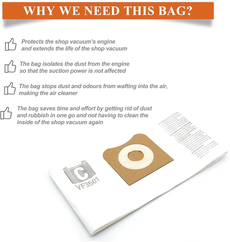 • Contains 20 Pack 3-4.5 Gallon VF3501 Vacuum Cleaner Bags