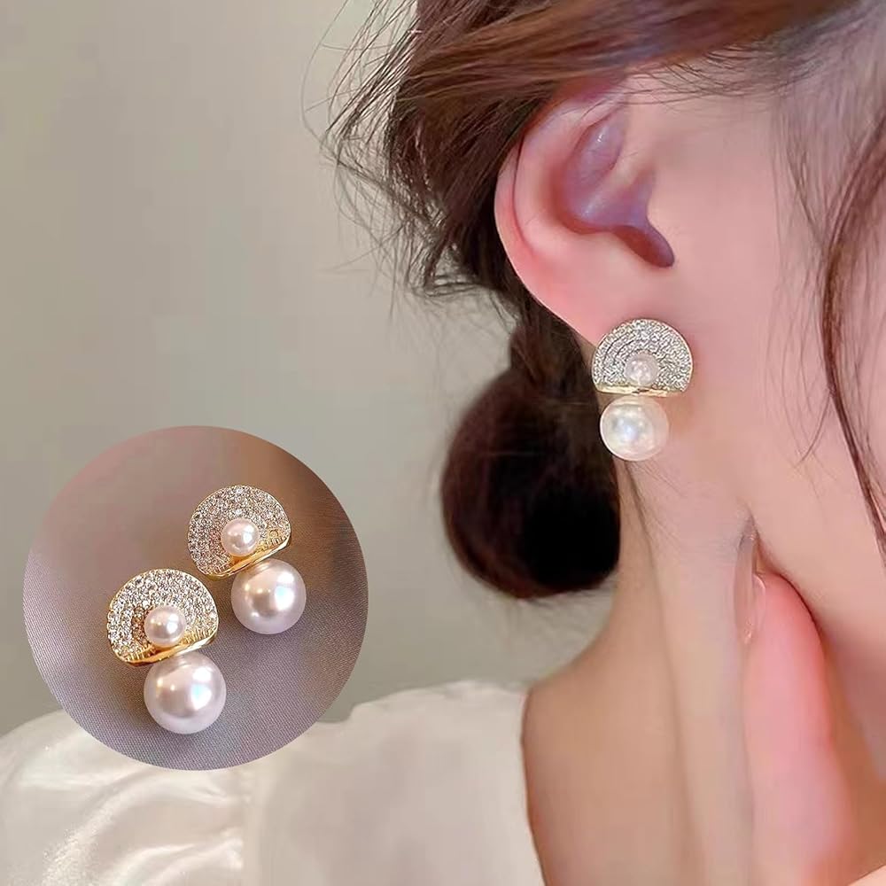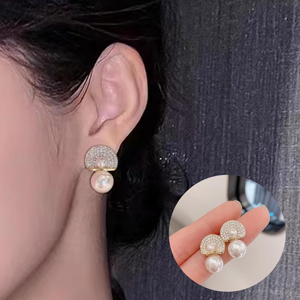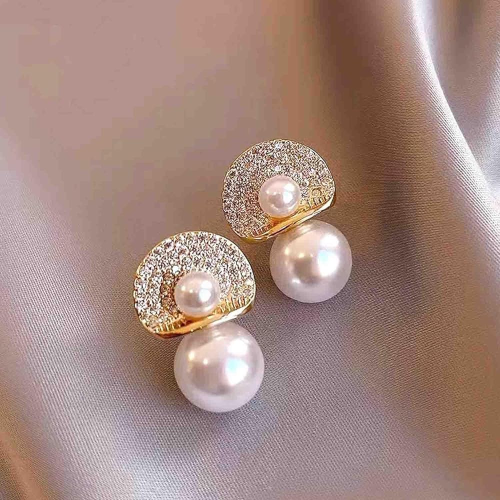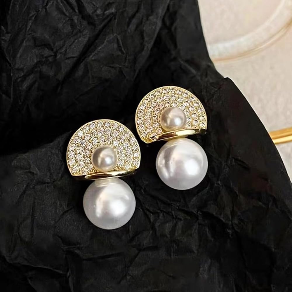 Sparkling shiny beautiful gold pearl crystal floral statement earrings , elegant and unique, and also protect your sensitive skin.