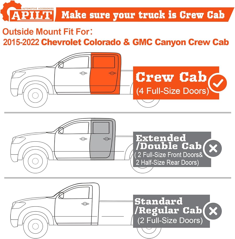 • منحرفات النوافذ تناسب 2015-2022 شيفروليه كولورادو وجي إم سي كانيون كرو كاب