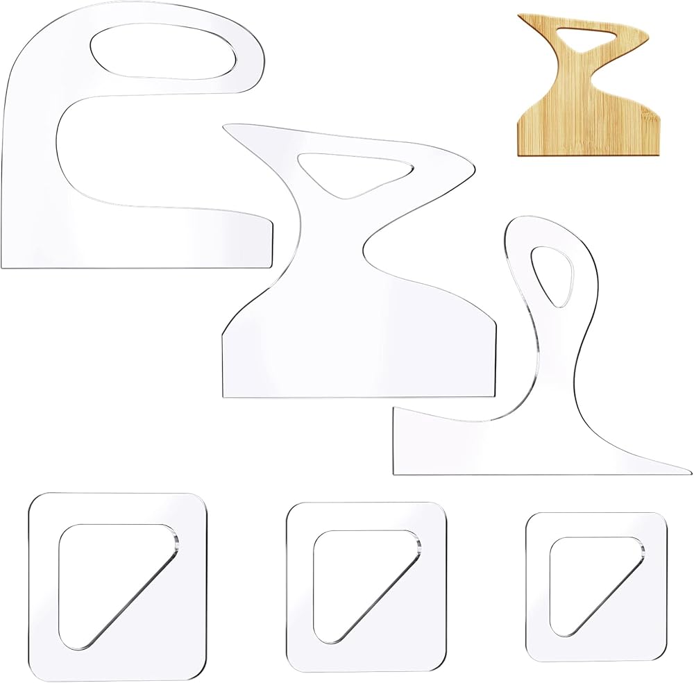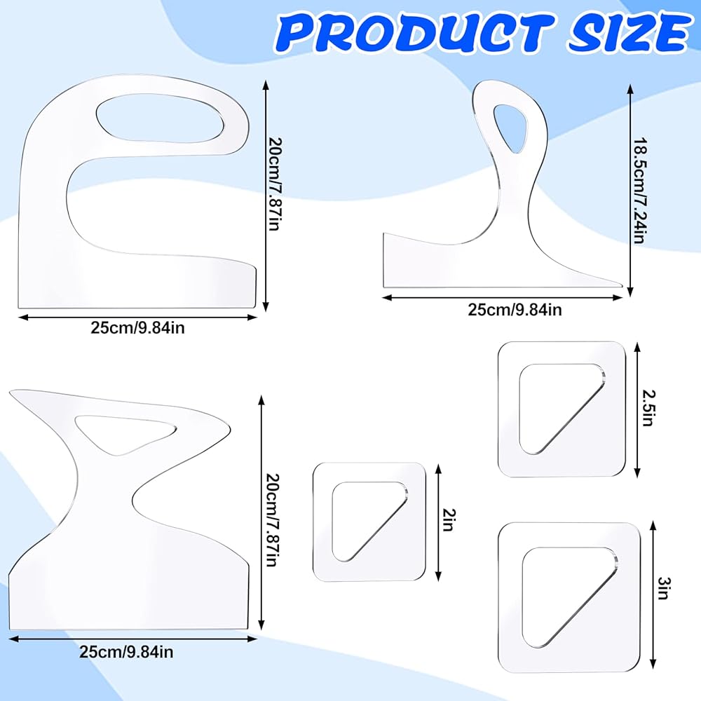 6 قطع من لوح التقطيع الأكريليكي مقاس 9.84 بوصة بمقبض متعرج بزاوية واضحة على شكل لوح تقطيع قالب راوتر لاستنسل تتبع الأعمال الخشبية ودليل قطع أدوات المطبخ