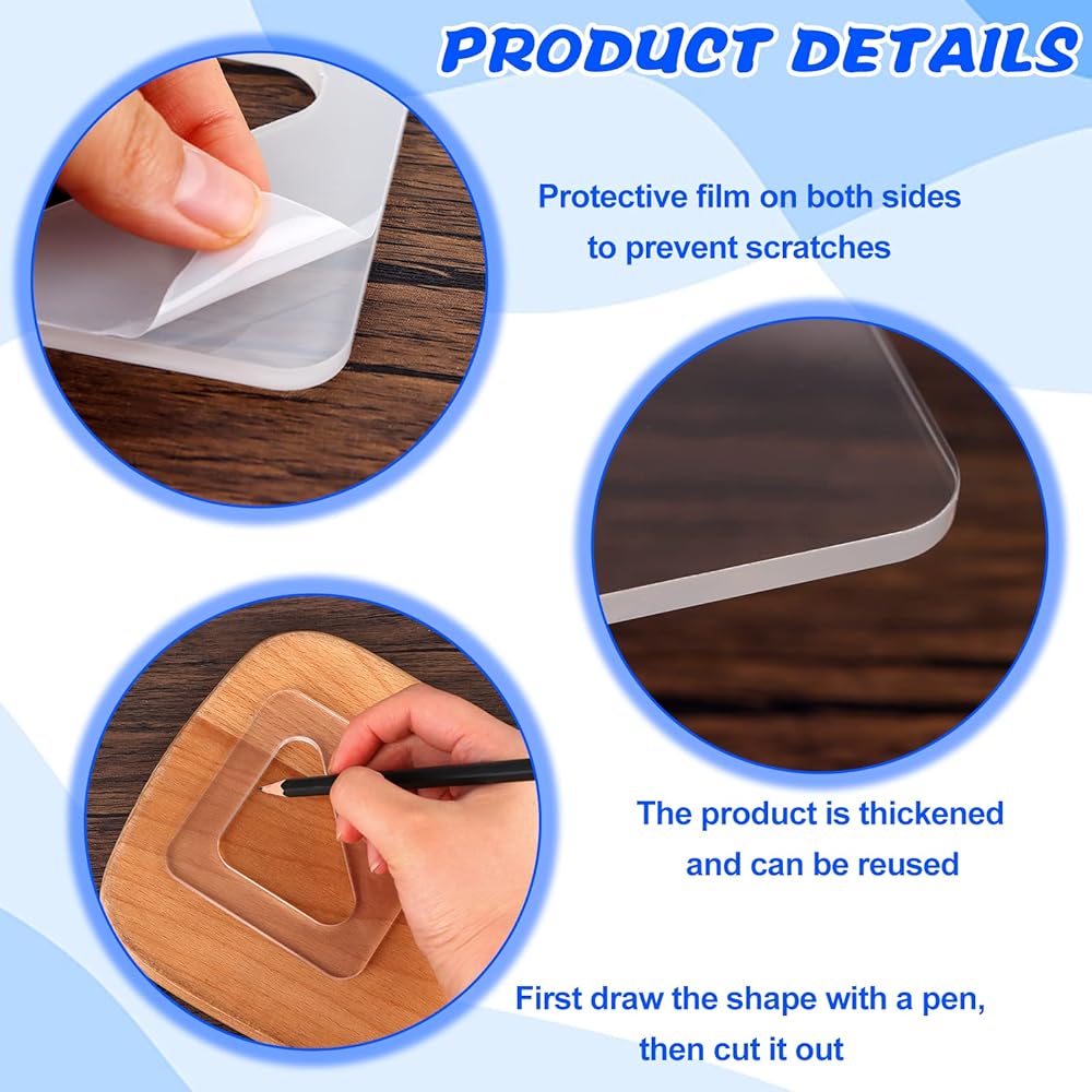 Sturdy Material--These charcuterie board stencils are mainly made of acrylic,the thickness is about 0.2 inch/5mm,the material is durable and reusable,not easy to break or deform,very suitable for cutting and shaping the charcuterie board handles,which can save your time And energy.ATTENTION:Please tear off the surface film before use to get a better experience.