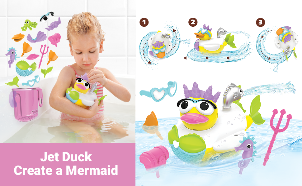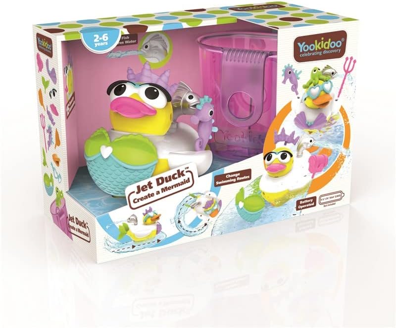 Yookidoo's Jet Duck Mermaid هي لعبة حوض استحمام مبتكرة وفريدة من نوعها ستبقي طفلك مستمتعًا في كل مرة يستحم فيها. إنها لعبة رائعة ومثالية لمجموعة واسعة من الأطفال الذين تتراوح أعمارهم بين 2-6 سنوات.