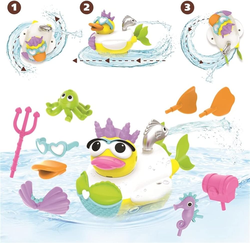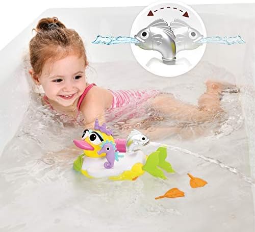لعبة حمام حورية البحر من يوكيدو جيت داك مع مسدس مياه يعمل بالطاقة - التطور الحسي ومتعة وقت الاستحمام للأطفال - لعبة حمام تعمل بالبطارية مع 15 قطعة - للأعمار من عامين فما فوق